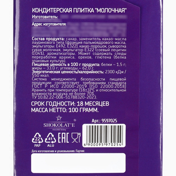 Фабрика счастья Плитка кондитерская «Новый год»