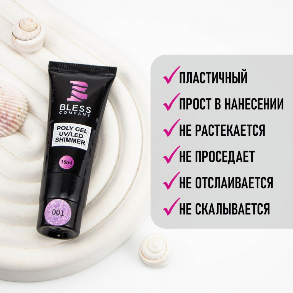 Bless company Полигель для ногтей с шиммером, оттенок 001 шикарный блеск