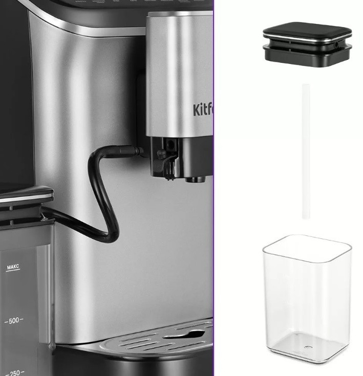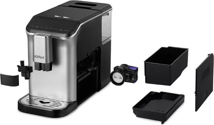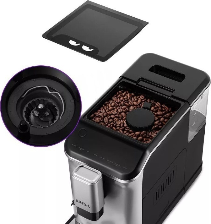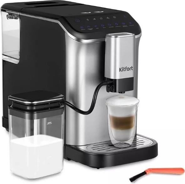 Kitfort Кофемашина КТ-7166В данный момент этот товар отсутствует в продаже. Возможно, у нас найдется аналогичный или похожий товар здесь. Кофемашина автоматическая Kitfort КТ-7166 мощностью 1350 Вт готовит эспрессо и молочно-кофейные напитки с использованием зернового кофе. В корпусе предусмотрены кофемолка со стальными коническими жерновами (15 уровней помола), съемная емкость для воды 1.5 л, металлический фильтр-сетка, резервуар для зерен 0.2 кг, контейнер для жмыха, автокапучинатор с чашей для молока 0.75 л и трубкой для его подачи. Длина шнура для подключения к электросети — 0.9 м. Машина оснащена сенсорными клавишами управления с подсветкой, которые позволяют выбирать объем кофе и молока для приготовления эспрессо (40 мл), двойного эспрессо (80 мл), латте, капучино (200 мл), американо (110 мл), дают возможность одним касанием получить молочную пену и горячую воду. Устройство оповещает о необходимости очистки, добавления зерен или воды. Максимальное давление, создаваемое насосом во время работы — 20 Бар. Носик для подачи напитков регулируется по высоте на 85-115 мм. Предусмотрена индикация отсутствия воды и зерен в резервуаре, переполнения контейнера для жмыха. Система самоочистки срабатывает при каждом включении и выключении прибора. Поддон для сбора капель, контейнер для воды, молока и зерен, трубочку для молока можно промывать под струей воды. Щеточка в комплекте позволяет очищать жернова кофемолки и другие труднодоступные места. |