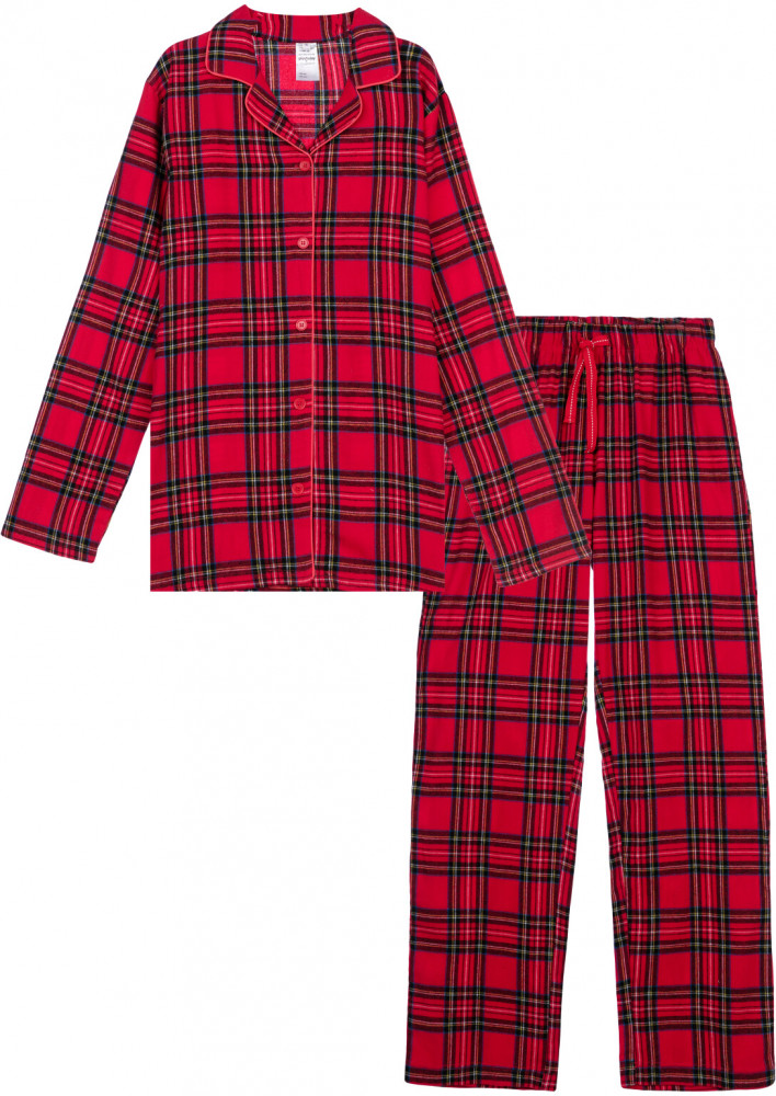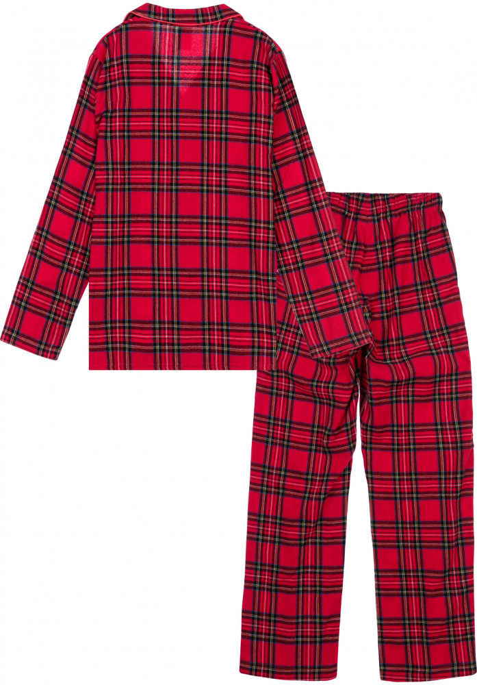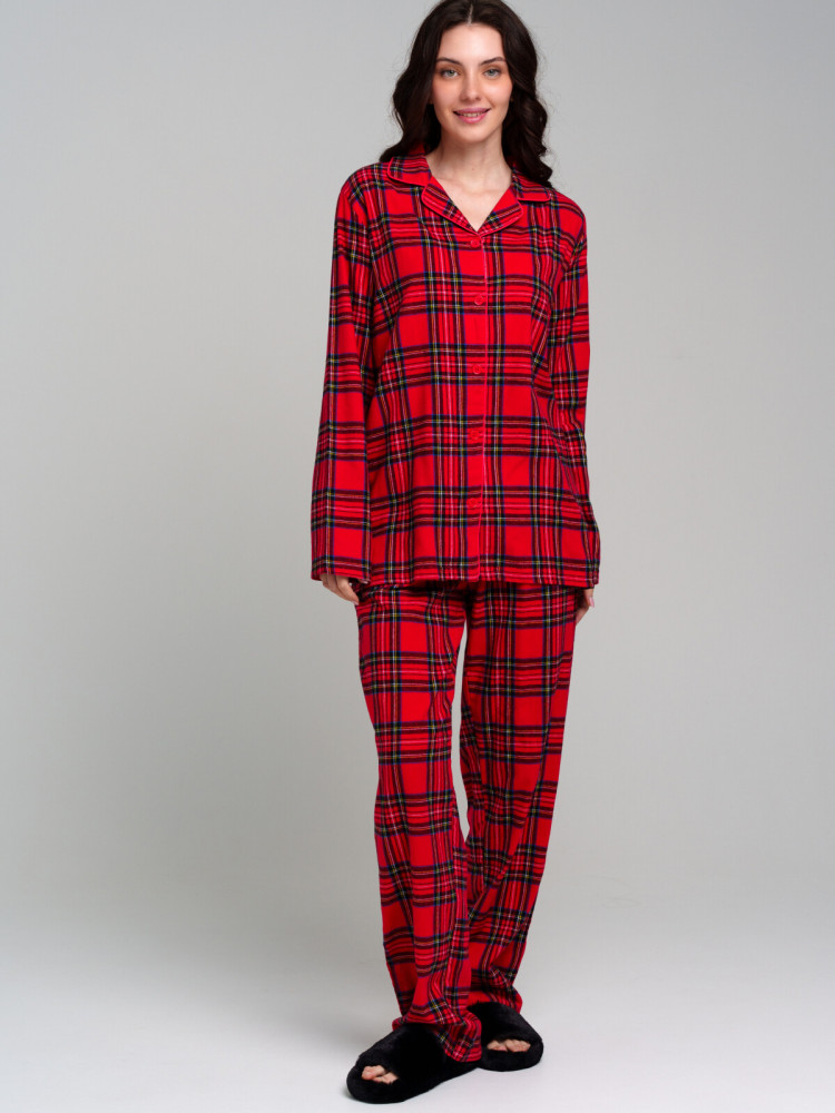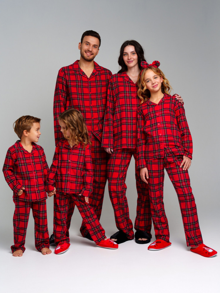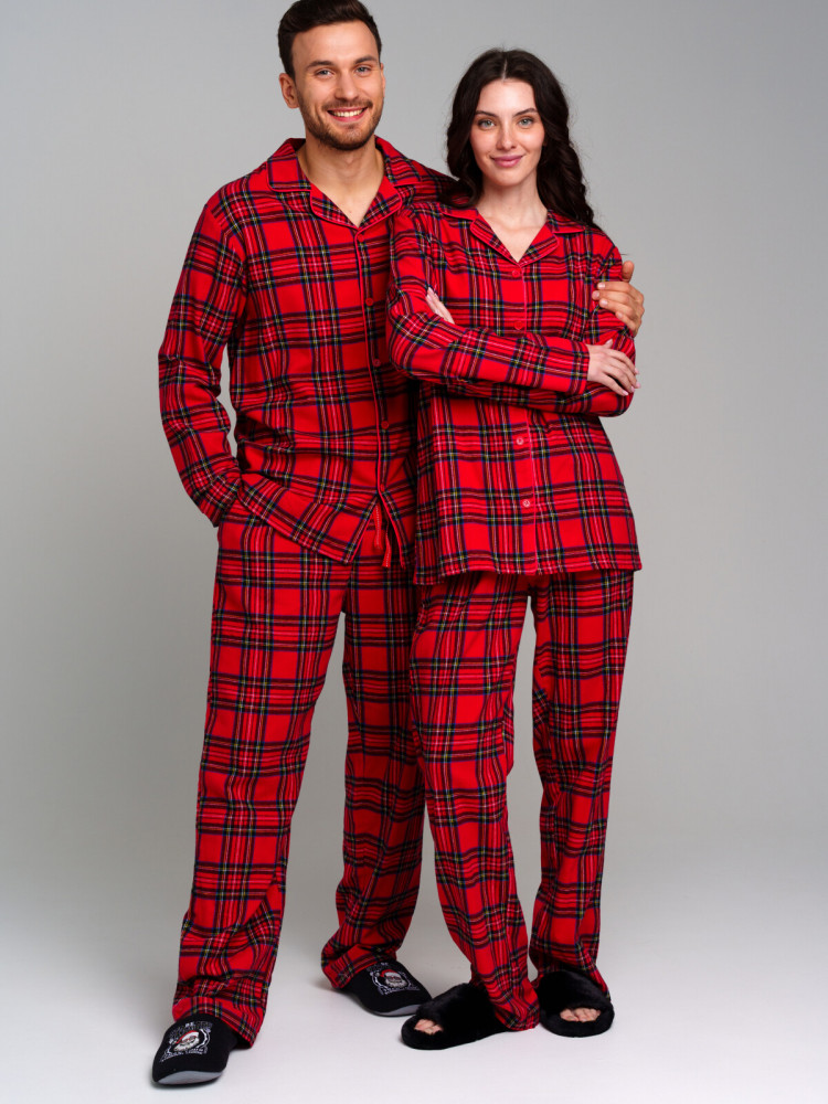 Пижама текстильная взрослых размеров: можно составить family look c детским вариантом пижамы аналогичного дизайна. 100% хлопок. Фланель — мягкая, приятная к телу ткань с небольшим начесом. Застежка на пуговицы. Карманы в брюках. Эластичный пояс с тесьмой позволяет легко надевать брюки и утягивать до комфортной посадки.