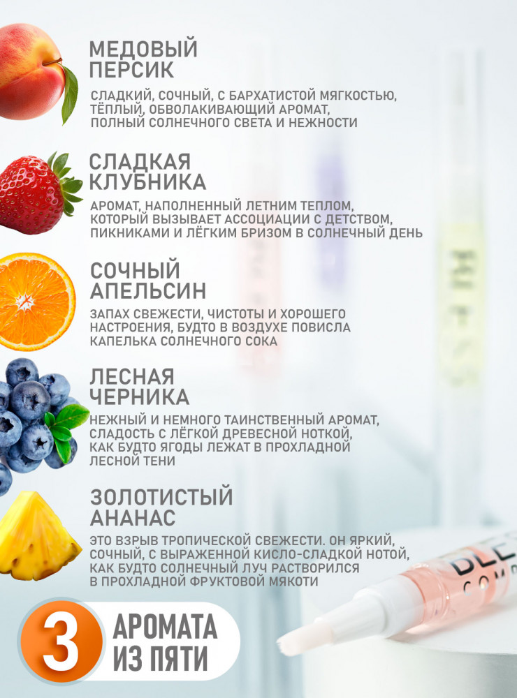 Bless company Набор масел для ухода за кутикулой «Пять ароматов»В данный момент этот товар отсутствует в продаже. Возможно, у нас найдется аналогичный или похожий товар здесь. Элегантный набор из 5 масел для ухода за ногтями и кутикулой. Каждая кисточка-карандаш объемом 5 мл содержит нежное масло, которое питает, увлажняет и укрепляет ногти. Компактный формат и удобный аппликатор делают использование простым и комфортным. |
