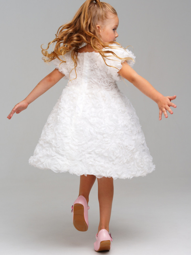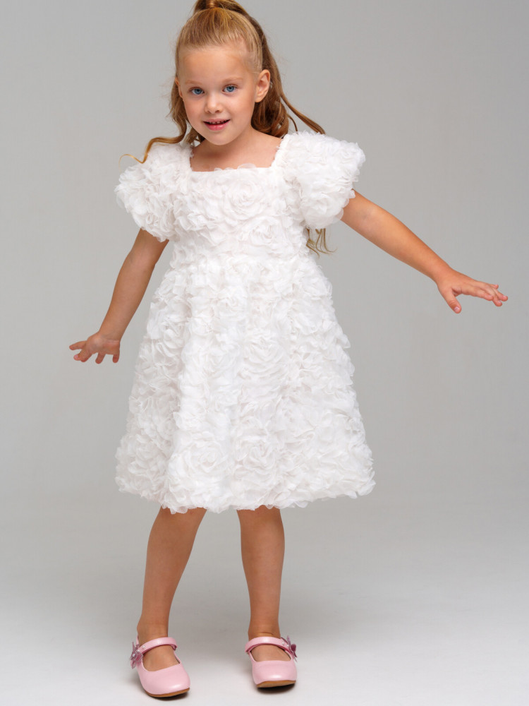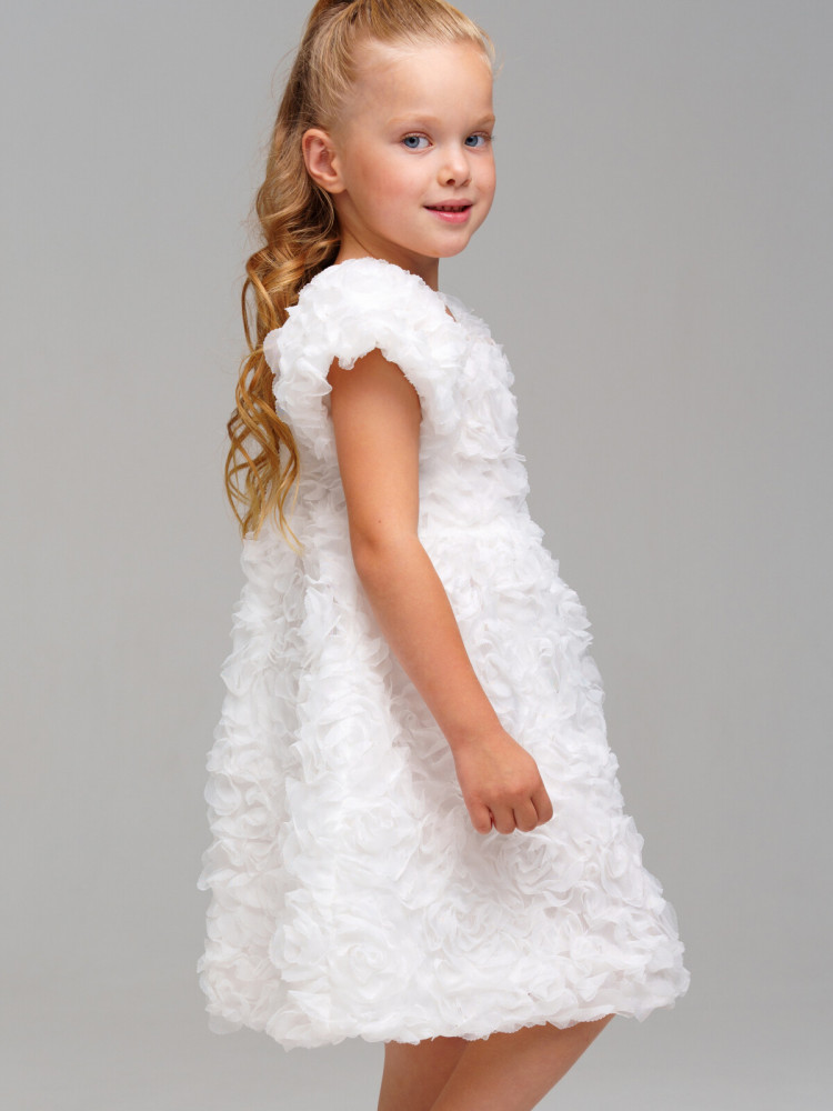 Платье нарядное из поплина для девочки подростка. Легкое, воздушное и комфортное. Декорировано цветами из сетки. Застежка на потайную молнию.