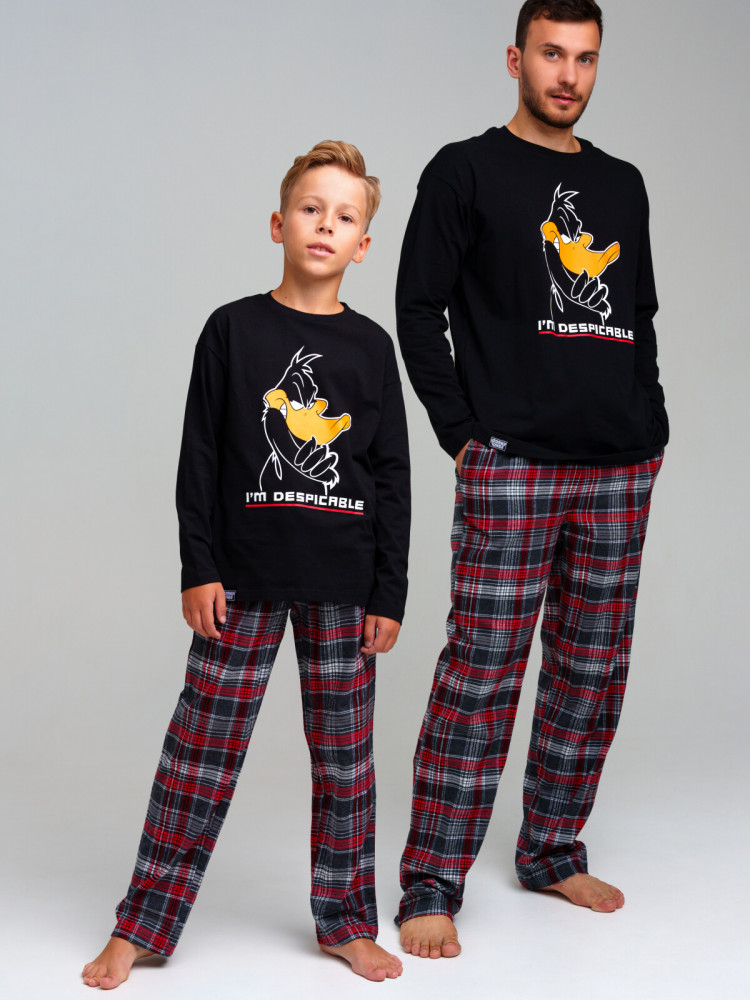 Пижама для мальчика подростка. Футболка из качественного и приятного на ощупь трикотажа джерси с высоким содержанием хлопка 95%. Благодаря наличию эластана в составе ткани изделие проще в уходе и держит форму. Брюки — 100% хлопок. Фланель — мягкая, приятная к телу ткань с небольшим начесом. Эластичный пояс с тесьмой позволяет легко надевать брюки и утягивать до комфортной посадки.