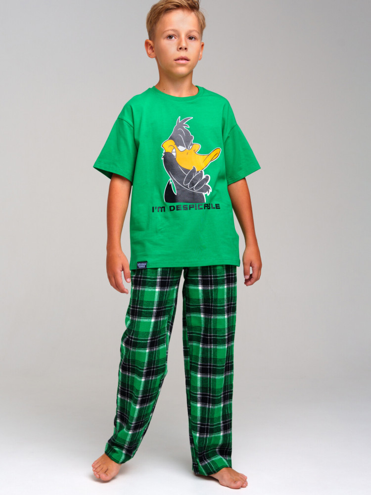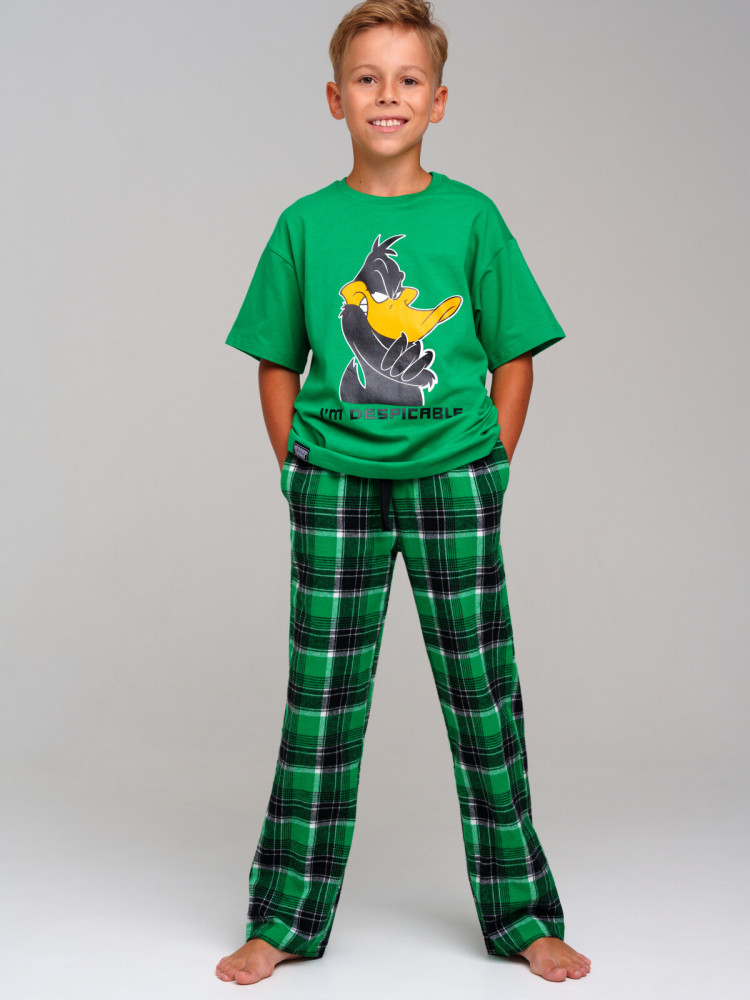Пижама для мальчика подростка. Футболка из качественного и приятного на ощупь трикотажа джерси с высоким содержанием хлопка 95%. Благодаря наличию эластана в составе ткани изделие проще в уходе и держит форму. Брюки — 100% хлопок. Фланель — мягкая, приятная к телу ткань с небольшим начесом. Эластичный пояс с тесьмой позволяет легко надевать брюки и утягивать до комфортной посадки.