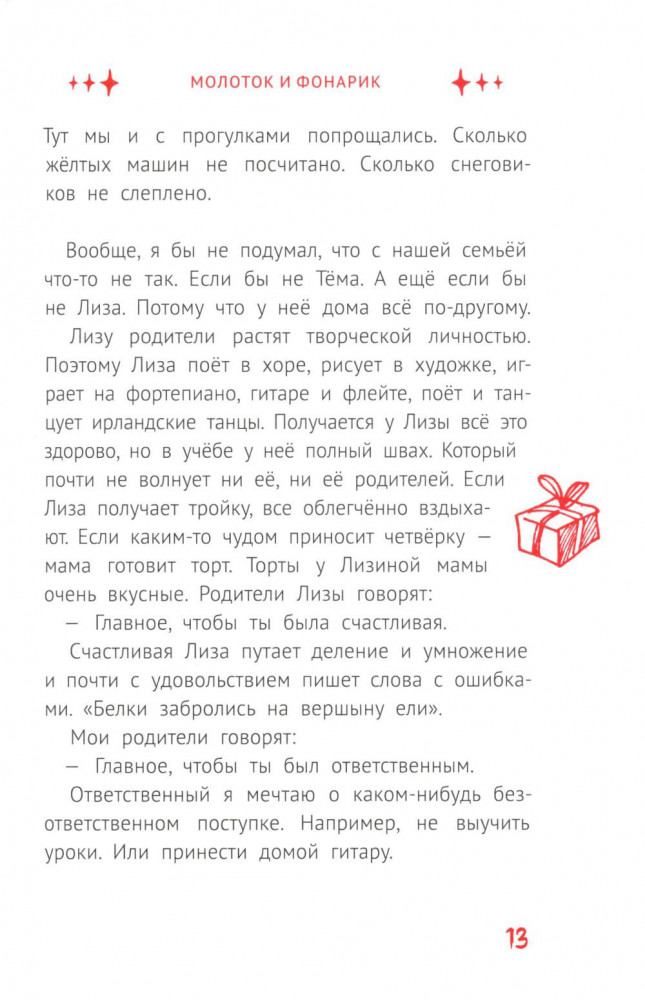 💳 Оплатить за товар можно при получении 🇰🇿 Есть бесплатная доставка по Казахстану от 1 дня 🎁 Копите бонусы с каждой покупки Число 13 принято считать несчастливым. Однако наши истории доказывают: когда любишь, важны не приметы, а люди. Герои этого сборника — самые обычные девочки и мальчики от 9 до 12 лет, а также их мамы и папы, бабушки и дедушки. И все они в преддверии Нового года становятся немного волшебниками. Один мальчик желает маме доброго начальника; бабушка рассказывает внукам о том, как в детстве получила от Деда Мороза самый главный подарок — здоровье; а девочка, оказавшись на Новый год в больнице, неожиданно для самой себя становится главной героиней сказки. |