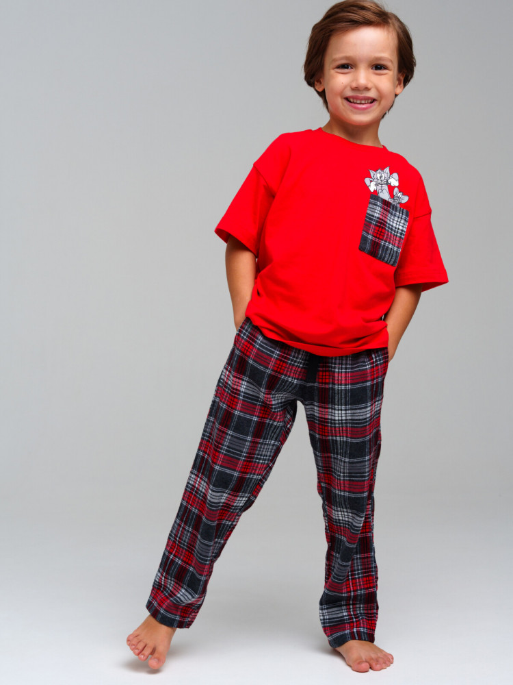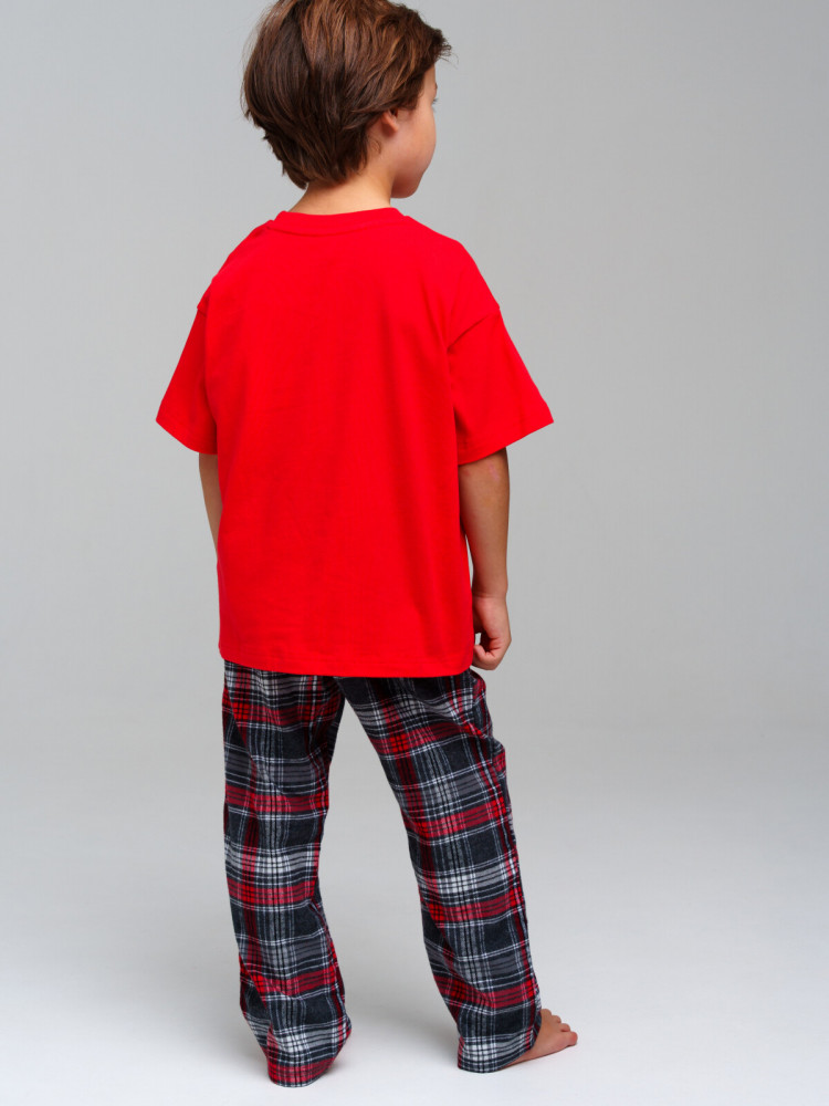 Пижама для мальчика подростка. Футболка из качественного и приятного на ощупь трикотажа джерси с высоким содержанием хлопка 95%. Благодаря наличию эластана в составе ткани изделие проще в уходе и держит форму. Брюки — 100% хлопок. Фланель — мягкая, приятная к телу ткань с небольшим начесом. Эластичный пояс с тесьмой позволяет легко надевать брюки и утягивать до комфортной посадки.
