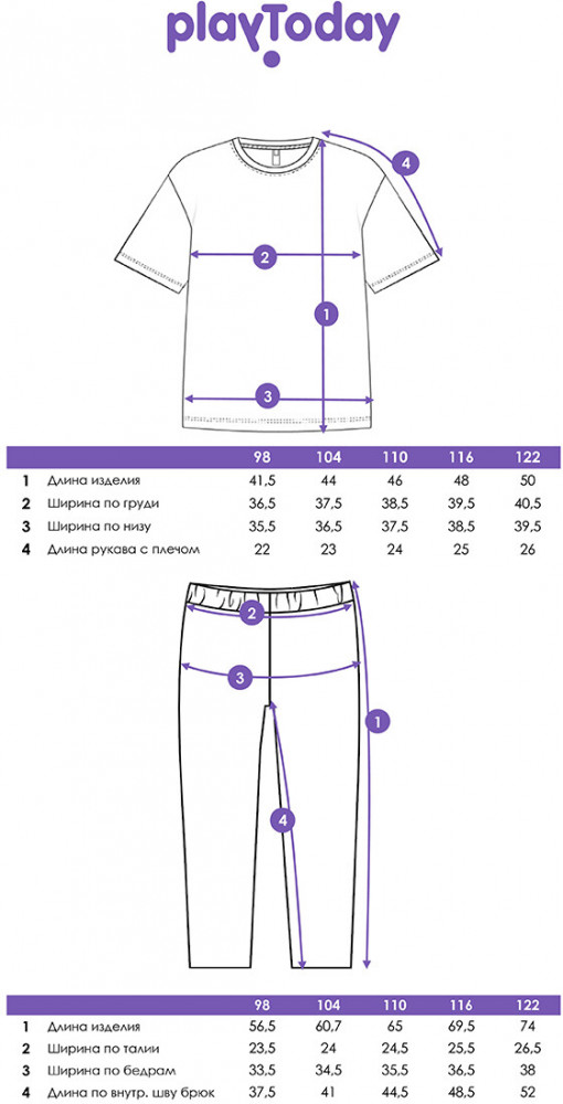 футболка: 95% хлопок, 5% эластан; брюки: 100% хлопок