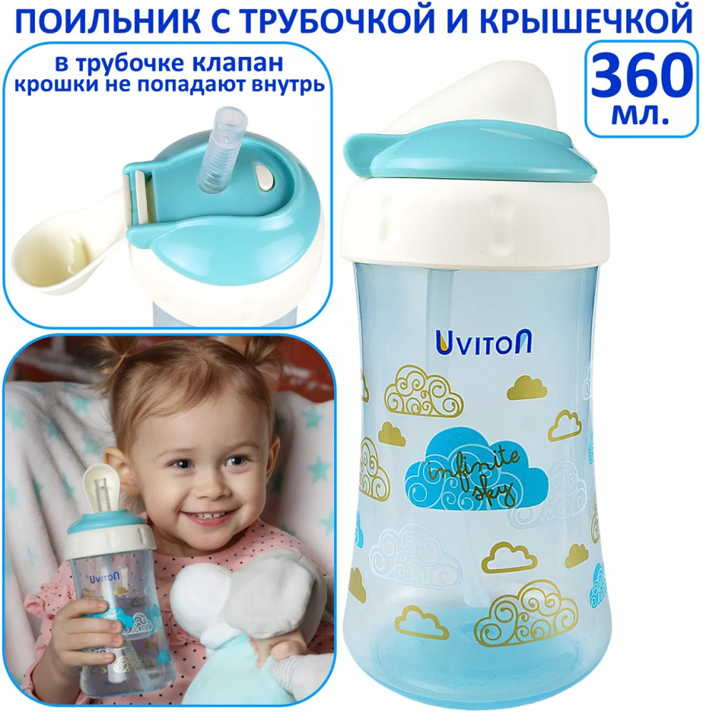 Поильник для питья станет незаменимой вещью на прогулке и в поездках с малышом 12 месяцев +. Удобная форма для маленьких ручек ребенка. Поильник с мягким носиком трубочкой имеет большой объём в 360 миллилитров, что позволяет взять с собой достаточное количество воды, смеси или других напитков.