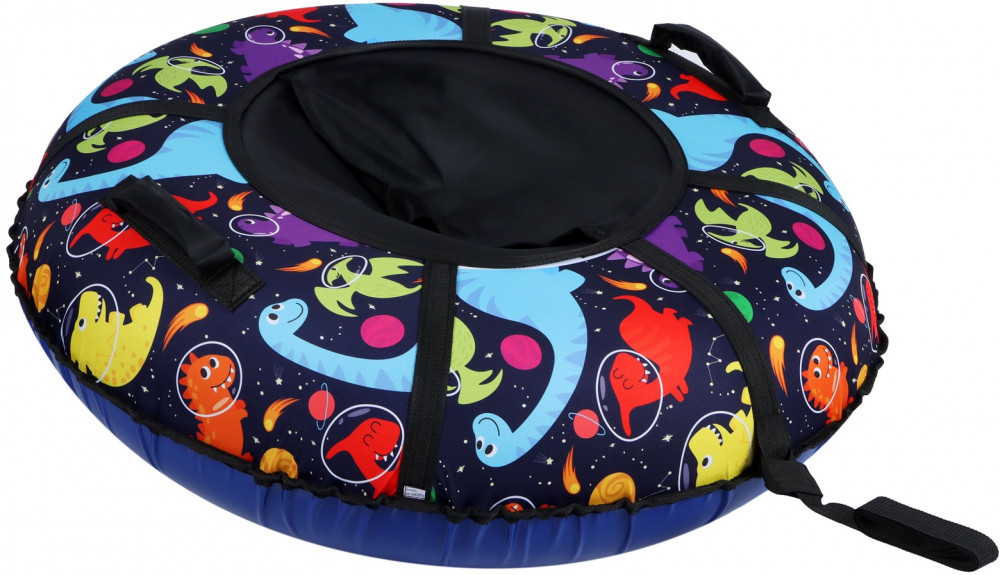 Дно тюбинга изготовлено из тентовой ткани плотностью 600 г/м², что гарантирует долгий срок службы и обеспечивает отличное скольжение. Снаряд оснащён безопасными ручками. Для тюбинга подойдёт камера 14 дюймов. Предназначен для детей от 12 лет.