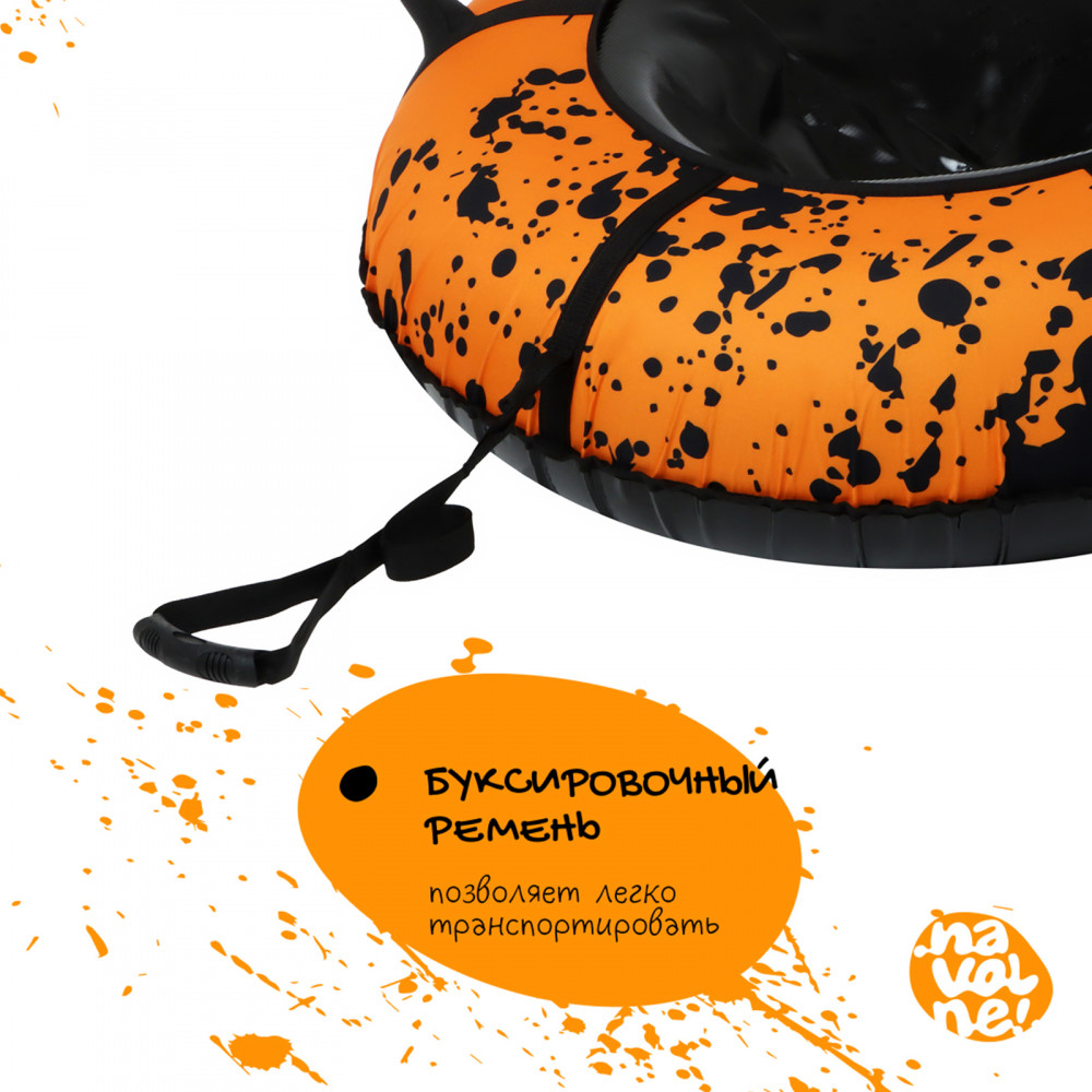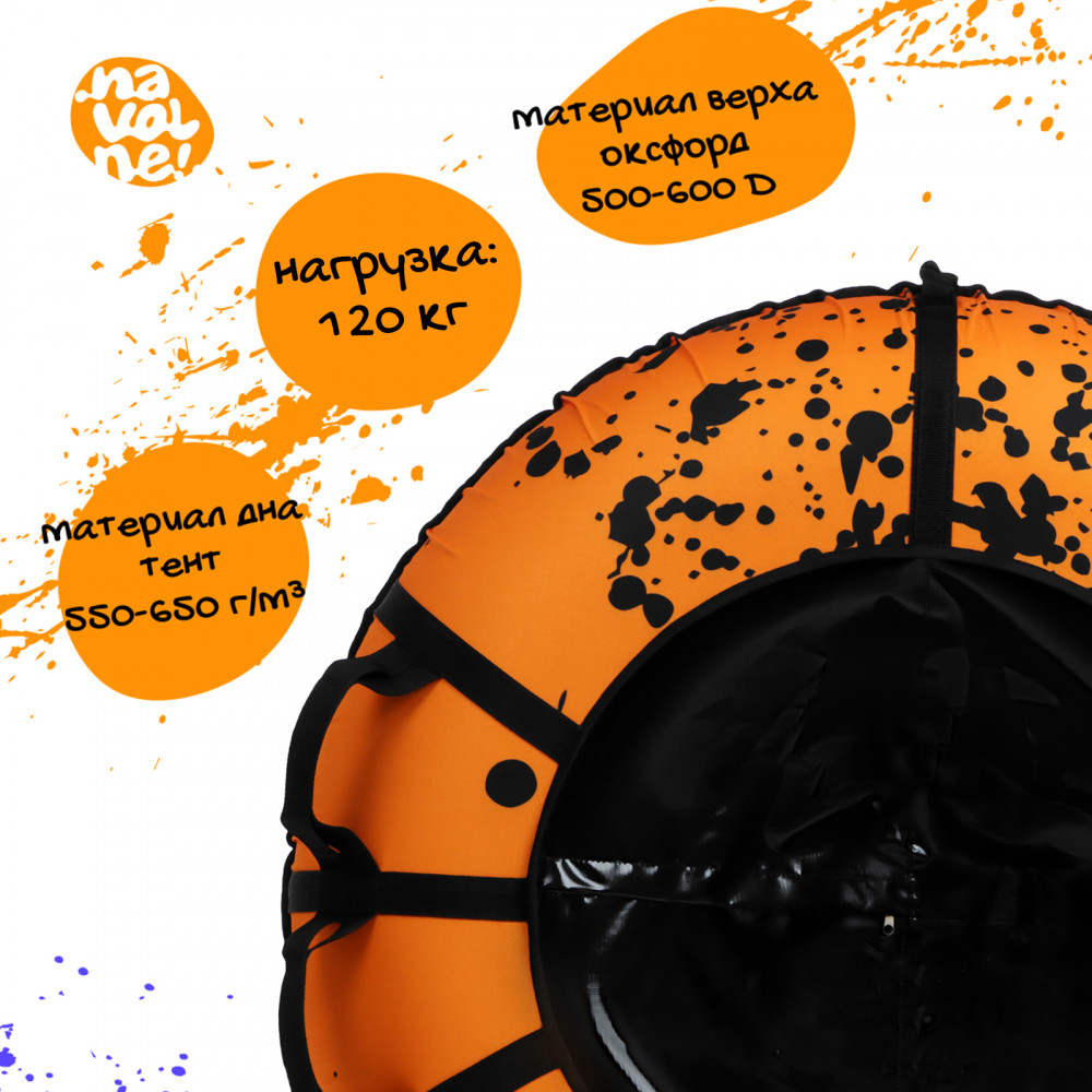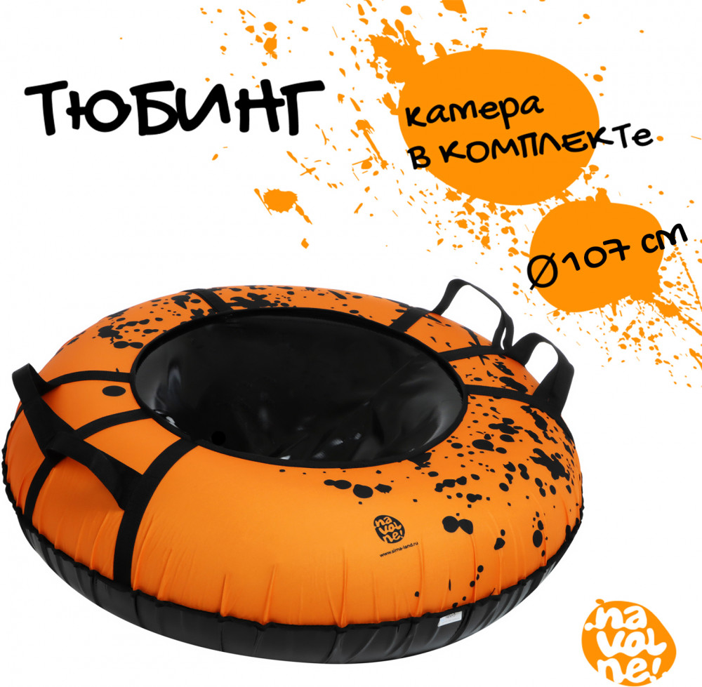Тюбинг — отличный спортивный инвентарь для активного зимнего отдыха. Дно изделия изготовлено из автотента, что обеспечивает отличное скольжение во время катания. Тюбинг оснащён усиленными ручками для дополнительной безопасности. Буксировочный трос позволяет легко транспортировать изделие. Фактический размер накачанного инвентаря зависит от температуры внешней среды и давления в камере. Для тюбинга подойдёт камера 15 дюймов. Предназначен для детей от 12 лет.