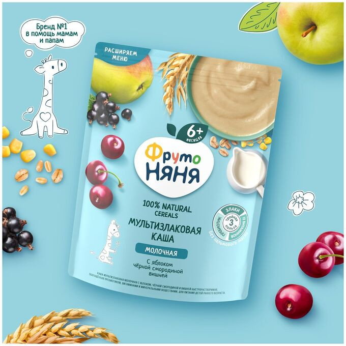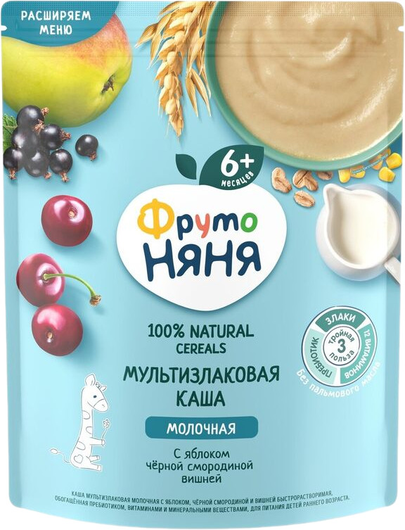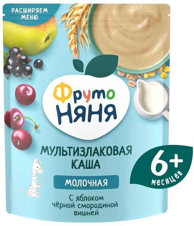 ФрутоНяня Каша молочная мультизлаковая с яблоком, смородиной и вишней