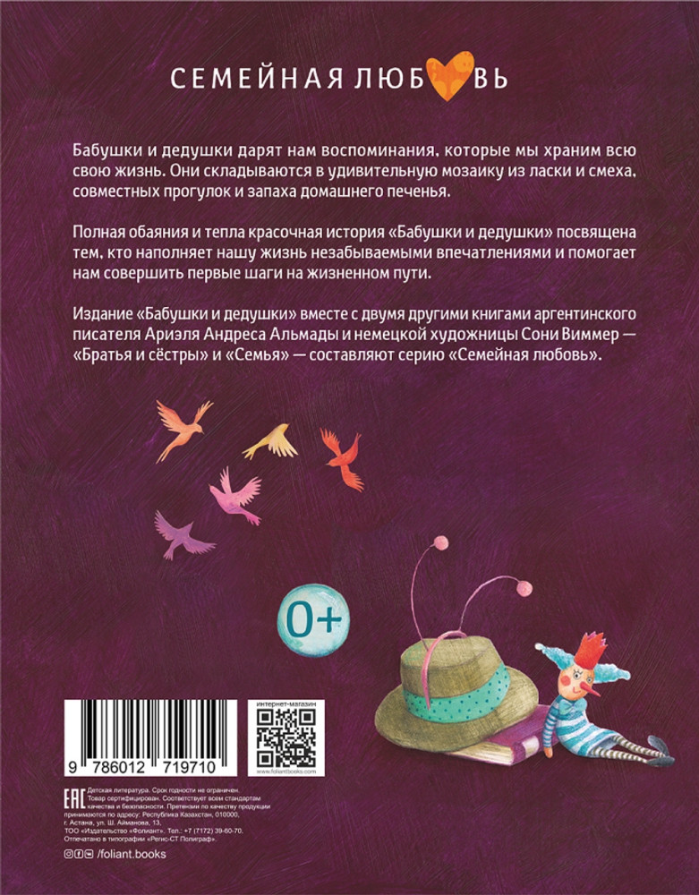 Бабушки и дедушки дарят нам воспоминания, которые мы храним всю свою жизнь. Они складываются в удивительную мозаику из ласки и смеха, совместных прогулок и запаха домашнего печенья. Полная обаяния и тепла красочная история «Бабушки и дедушки» аргентинца Ариэля Андреса Альмады и немки Сони Виммер посвящена тем, кто наполняет нашу жизнь незабываемыми впечатлениями и помогает нам совершить первые шаги на жизненном пути.