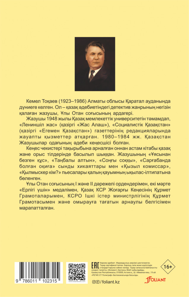 💳 Оплатить за товар можно при получении 🇰🇿 Есть бесплатная доставка по Казахстану от 1 дня 🎁 Копите бонусы с каждой покупки Қазақ әдебиетіндегі детектив жанрының негізін қалаған көрнекті қаламгер Кемел Тоқаев шытырман оқиғалы көптеген роман-хикаятымен оқырман қауымның ыстық ықыласына бөленді. Бұл жинаққа жазушының «Таудағы жаңғырық», «Түнде атылған оқ», «Замандастар сыры» деген туындылары енгізіліп отыр. |
