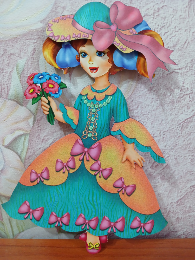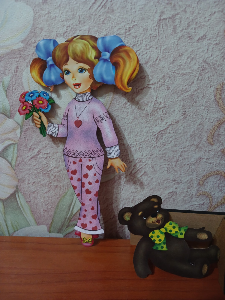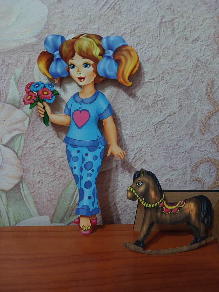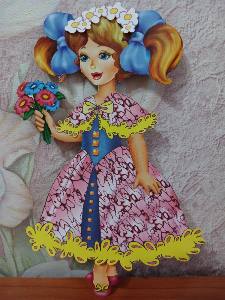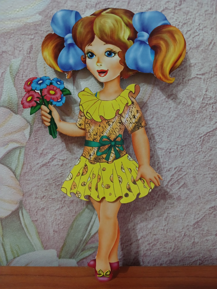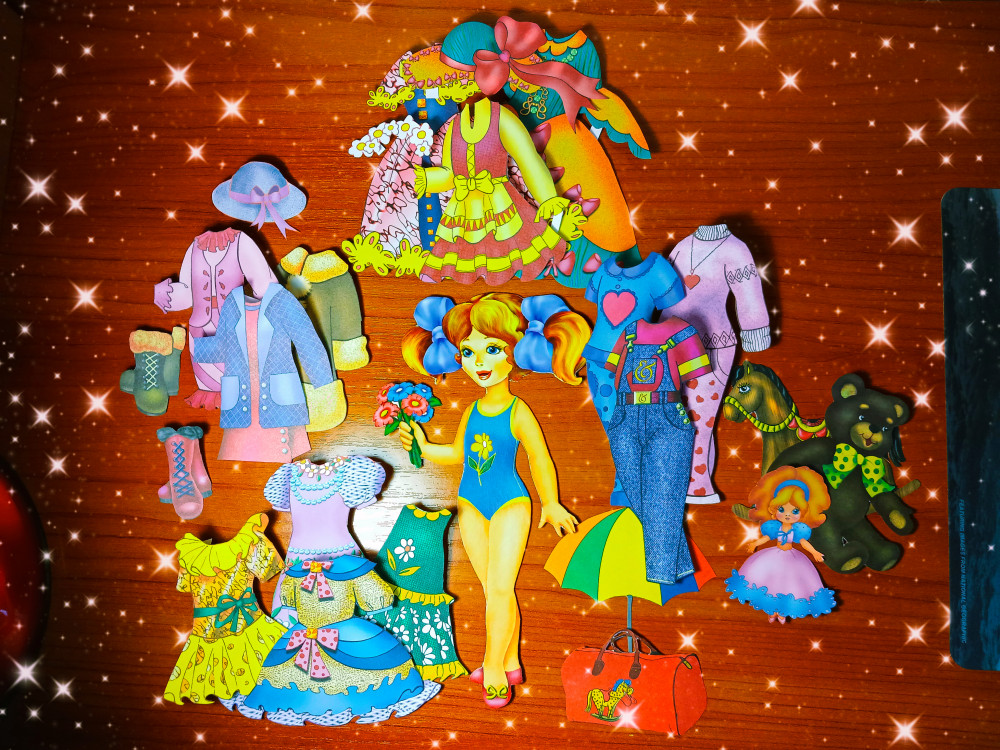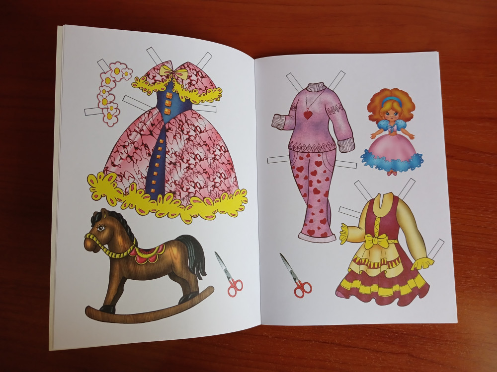 Кукла Даша 👩🦰🎎✂️👚👗🥻👒👛💎👠 Увидела в интернет-магазине эту куколку и захотелось купить. Часто рассматриваю бумажных кукол в сети, но сама в прошлый раз держала их в руках, когда мне было лет одиннадцать. По мере взросления они просто стояли на полке в разных нарядах в качестве украшения интерьера. Подумала, а почему бы и сейчас не поставить их на полочку. Даша мне очень понравилась. Она напоминает мне моих кукол из 80-х и одежда похожа. Вероятно рисовалась по мотивам именно кукол тех лет. Кукла довольно большая, яркая. Её нужно склеивать с двух сторон. Наряды и аксессуары тоже яркие, бумага достаточно плотная. Я довольна. Издательство: "Фламинго". Дата выхода: 2022 год.