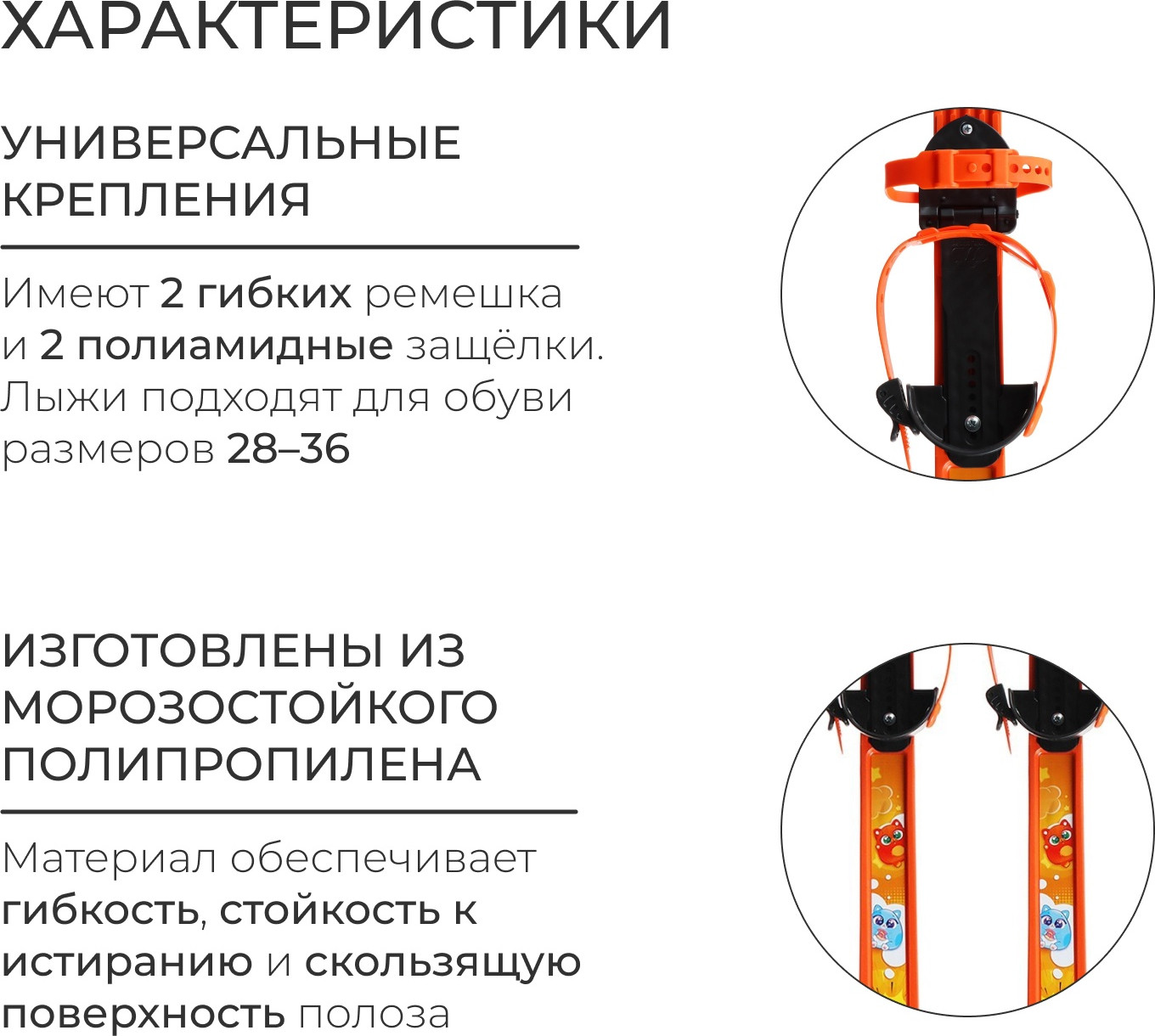Snow Cat Комплект лыжныйВ данный момент этот товар отсутствует в продаже. Возможно, у нас найдется аналогичный или похожий товар здесь. Лыжи предназначены для детей дошкольного и младшего школьного возраста (от 5 лет). Изготовлены из морозостойкого полипропилена. Материал обеспечивает гибкость, стойкость к истиранию и скользящую поверхность полоза. Температура хрупкости до —20 °С. |