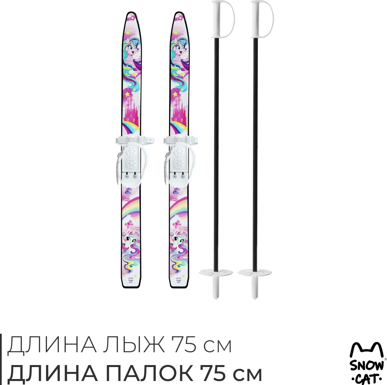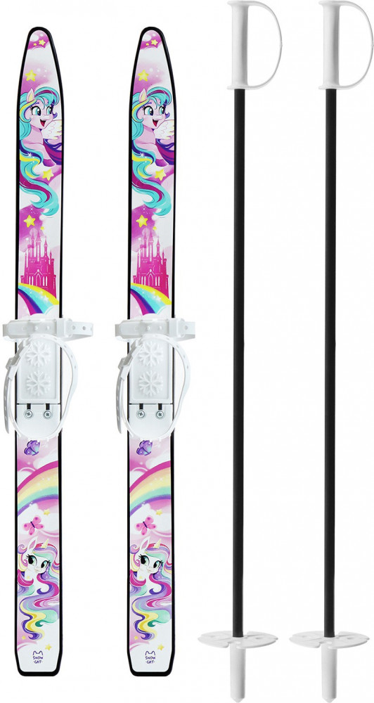 Палки имеют пластиковые травмобезопасные наконечники, это обеспечивает защиту во время катания. Длина лыж: 75 см. Длина палок: 75 см.