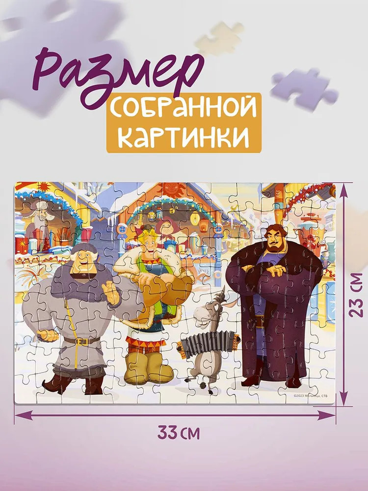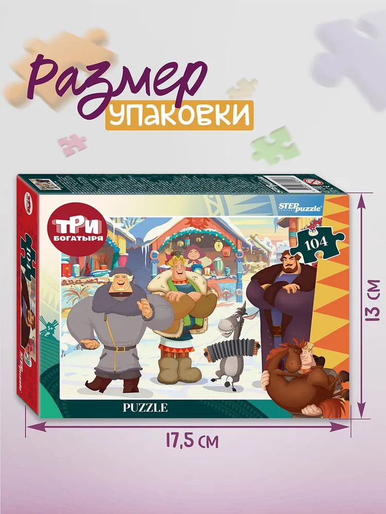 Step Puzzle Пазл «Три богатыря и Пуп Земли»В данный момент этот товар отсутствует в продаже. Возможно, у нас найдется аналогичный или похожий товар здесь. Серия: Три богатыря Пазл для ребенка состоит из 104 прочных деталей с красочными иллюстрациями любимых персонажей мультфильма. Игровой набор для мальчиков и девочек. Пазлы для детей 5 лет. Игра вызовет восторг у ребенка. Ему предстоит собрать яркую и красочную картинку, используя все детали. Сюжет картины рассказывает о приключениях трех самых известных в России и за ее пределами богатырей — Алёши Поповича, Добрыни Никитича и Ильи Муромца. На картинке вместе с Алешей Поповичем мы видим ослика Моисея. Судя по всему, богатыри готовятся отправиться в очередное приключение! |