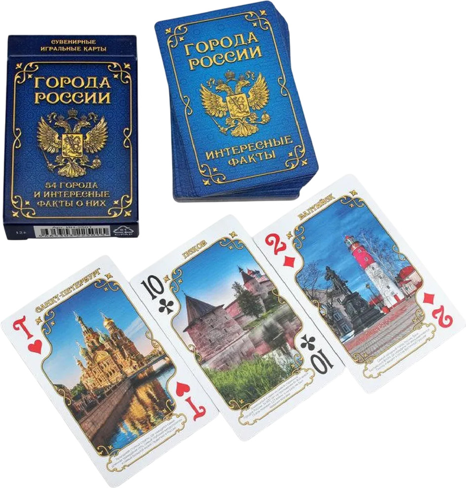 Миленд Карты игральные «Города России»В данный момент этот товар отсутствует в продаже. Возможно, у нас найдется аналогичный или похожий товар здесь. Колоду сувенирных карт из 54 штук можно преподнести в качестве презента любителям пасьянсов и игр. Благодаря тематике изображений, карты могут быть оригинальным сувениром для иностранцев. Материал поверхности приятен на ощупь, улучшает скольжение карт и увеличивает их долговечность. |