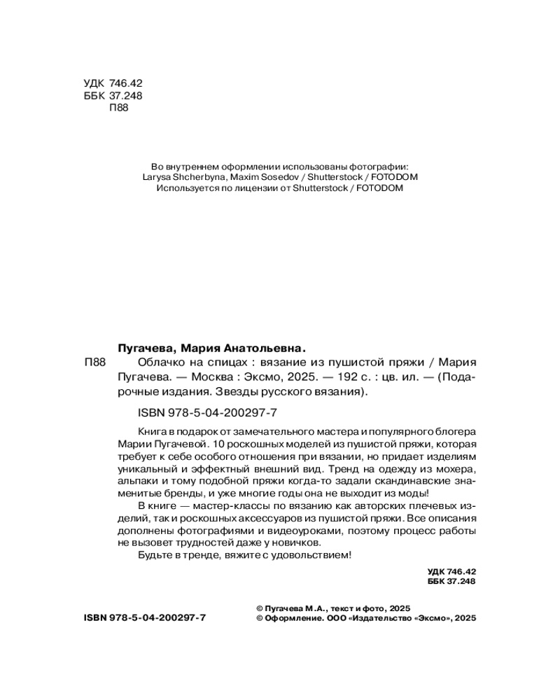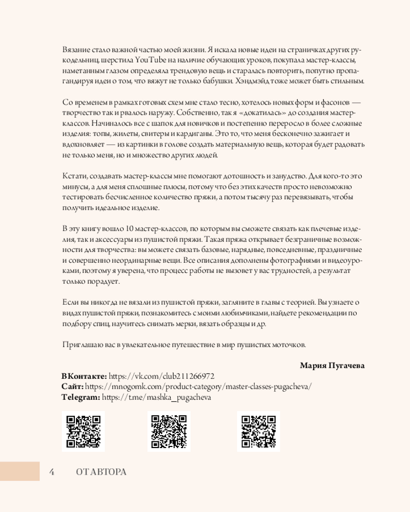 Все тонкости и секреты — в подробных мастер-классах по вязанию невероятно стильных и красивых моделей от Марии Пугачевой. Идеальный подарок вязальщице! |
