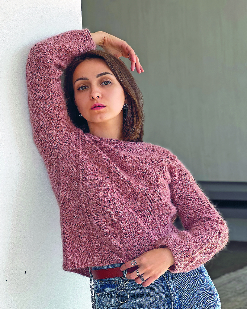• пушистая пряжа отлично выглядит как в воздушных ажурных узорах, так и в плотных аранах, а одежда из нее женственна и изысканна;
