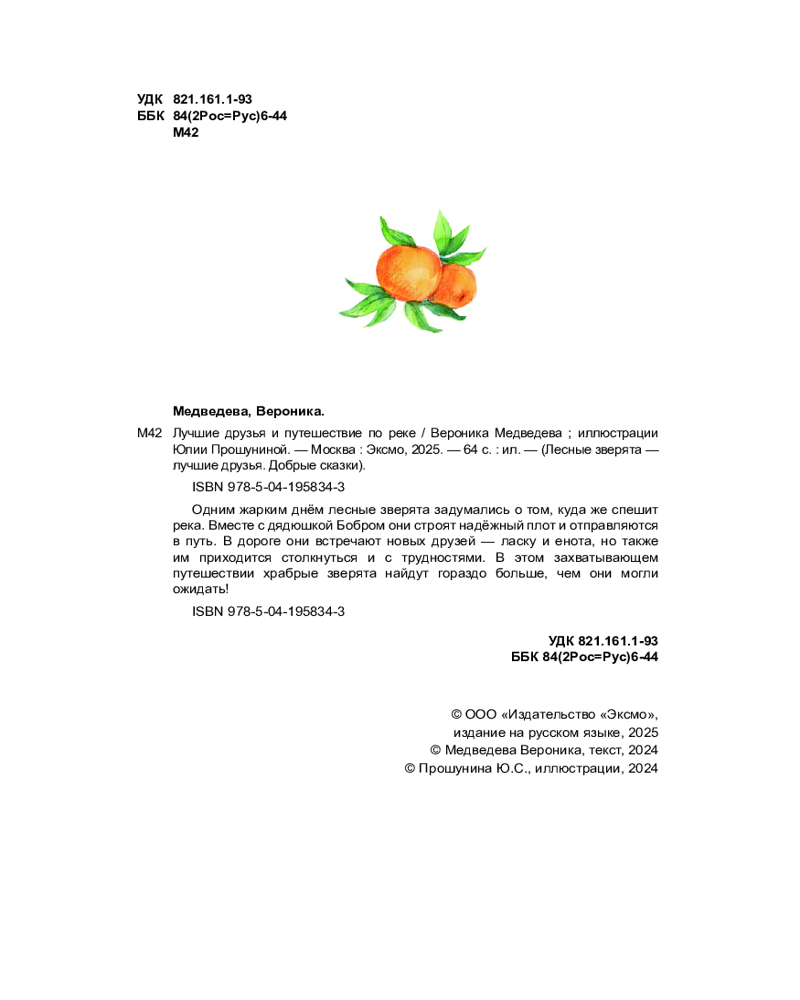 Серия: Лесные зверята — лучшие друзья. Добрые сказки Волшебная история для всей семьи о лесных зверятах, отправившихся в увлекательное путешествие по реке! Устройте себе уютный вечер, читая об отважных и дружных животных и любуясь невероятными акварельными иллюстрациями на мелованной бумаге, в которых важна каждая деталь. А после приготовьте вкуснейший апельсиновый лимонад по рецепту в конце книги. Серия «Лесные зверята — лучшие друзья. Добрые сказки» — это рассказы для всей семьи. Проведите время вместе, читая волшебные истории с поучительным сюжетом! |