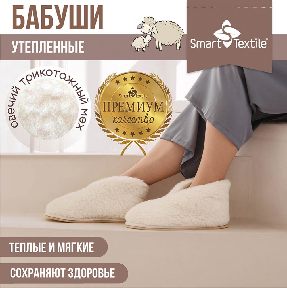 Smart Textile Тапочки домашние меховые «Бабуши»