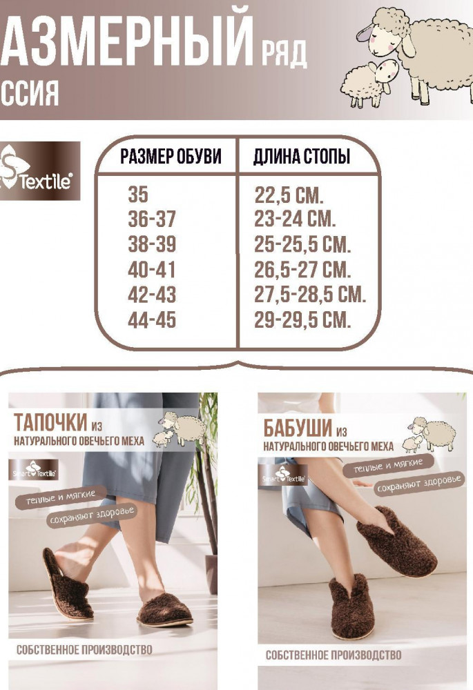 Smart Textile Тапочки домашние меховые «Домашнее тепло»