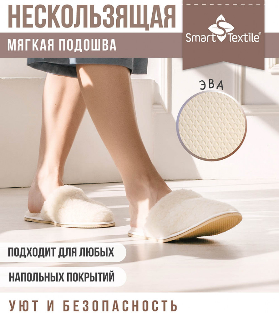 Тапочки из овечьего меха «Домашнее тепло» послужат прекрасным подарком, олицетворяющим заботу о здоровье родных и друзей. Тапочки подарят уют даже вдалеке от дома: в поездке, на отдыхе, в санатории, в больнице, в гостинице и т.д. Тапочки с открытой пяткой легко надевать даже пожилым людям. Домашняя обувь давно уже стала признаком уюта. Эти привычные всем предметы туалета служат для защиты, обогрева, добавляет нотку комфорта в повседневную жизнь. Объединение «Специальный Текстиль» не обошло своим вниманием этот вопрос, создав линейку уникальной продукции, доступной каждому. Тапочки из овечьего меха «Домашнее тепло. Эконом» характеризуются демократичной ценой и отличными показателями качества.