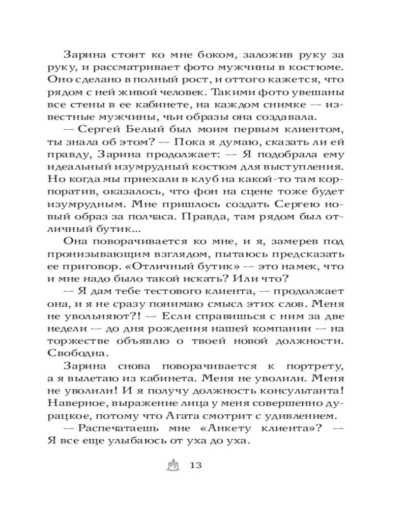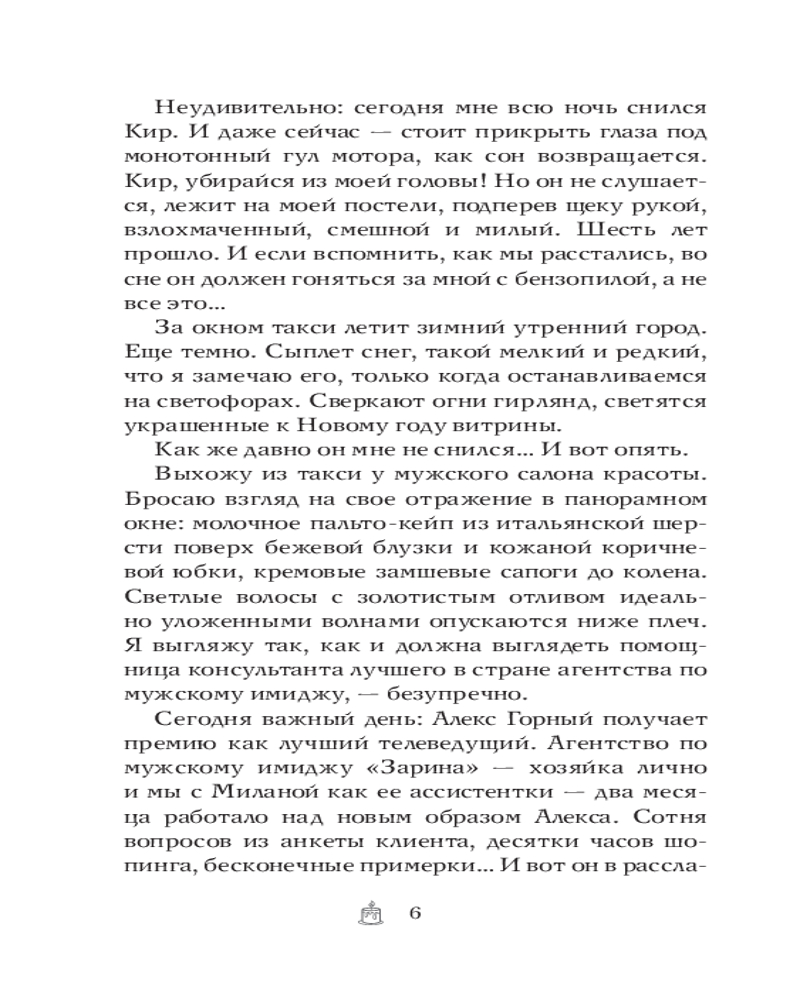 💳 Оплатить за товар можно при получении 🇰🇿 Есть бесплатная доставка по Казахстану от 1 дня 🎁 Копите бонусы с каждой покупки Серия: Зимняя романтика Стелла семь лет шла к заветной мечте — стать ведущим консультантом лучшего в стране агентства мужского имиджа. И когда до заветной должности остается всего шаг, в качестве тестового клиента она получает... своего бывшего парня Кира. Даже из обезьяны проще сделать человека, чем из егеря джентльмена. К тому же Кир спит и видит, как бы • отомстить ей. Только Стелла никогда не сдается. Посмотрим, кто кого! |