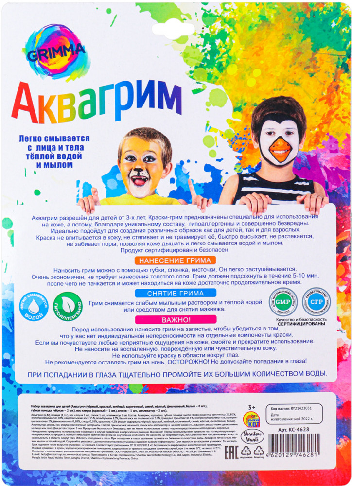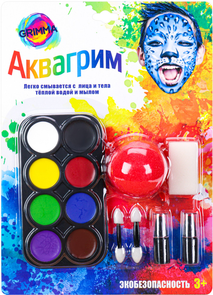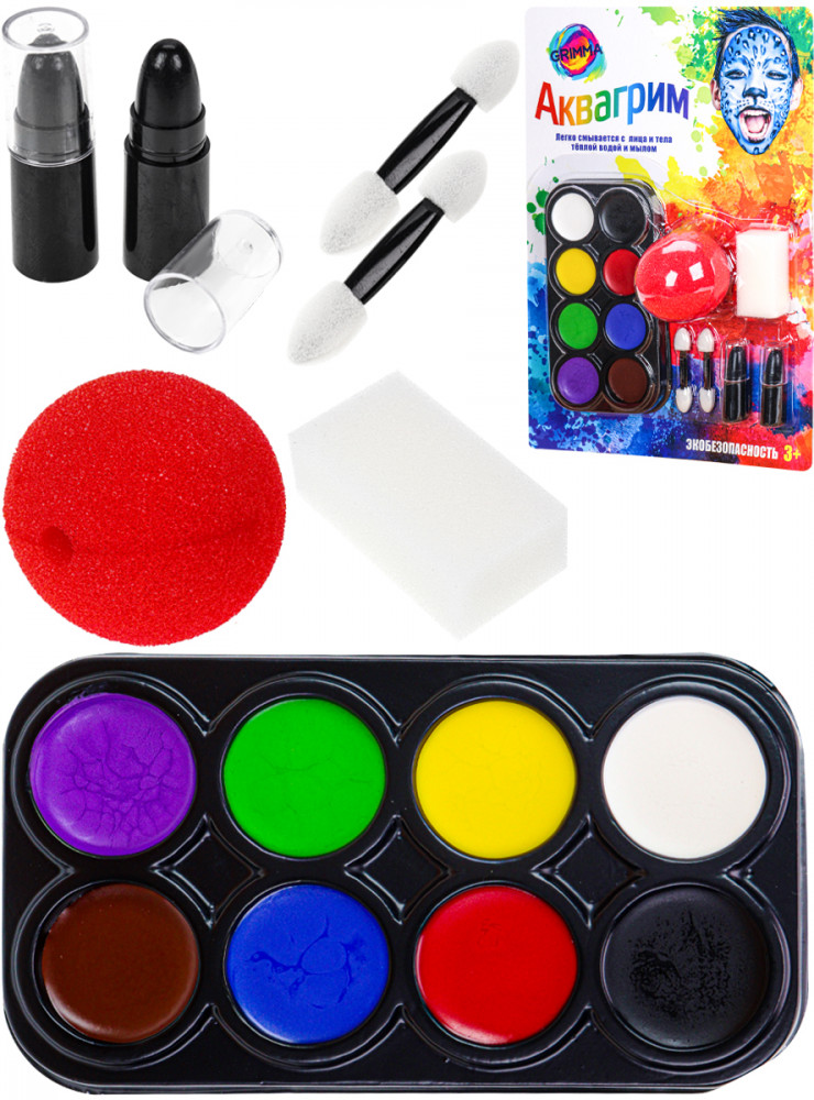 в комплекте кисточки, спонжик и как мне показалось нос клоуна из губки (не поняли как его использовать)