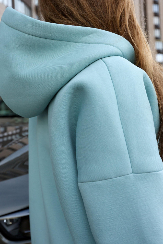 Футер с начесом, кое где торчат нитки - но это не критично. Цвет больше серо-синий. Лучше брать на размер больше. Тёплая. но смотрится дёшево. мне не понравилось как на мне сидит. но толстовка неплохая