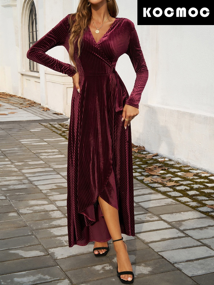 Эта платье с V-образным вырезом и высоким поясом, выполненное из качественного полиэстера, легкое и удобное, хорошо пропускает воздух и подходит для весенне-летнего сезона. Высокая талия подчеркивает пропорции фигуры, демонстрируя элегантные линии. Вырез имеет идеальную форму, придавая образу свежесть и немного сексуальности. Разрез на юбке добавляет динамики, создавая необычное очарование при движении и подчеркивая женскую привлекательность. Минималистичный однотонный стиль подходит для различных мероприятий — будь то свидание, вечеринка или повседневная прогулка, платье легко сочетать с разными аксессуарами. Оно отлично смотрится как с каблуками, так и с повседневной обувью, что делает его незаменимым элементом гардероба.