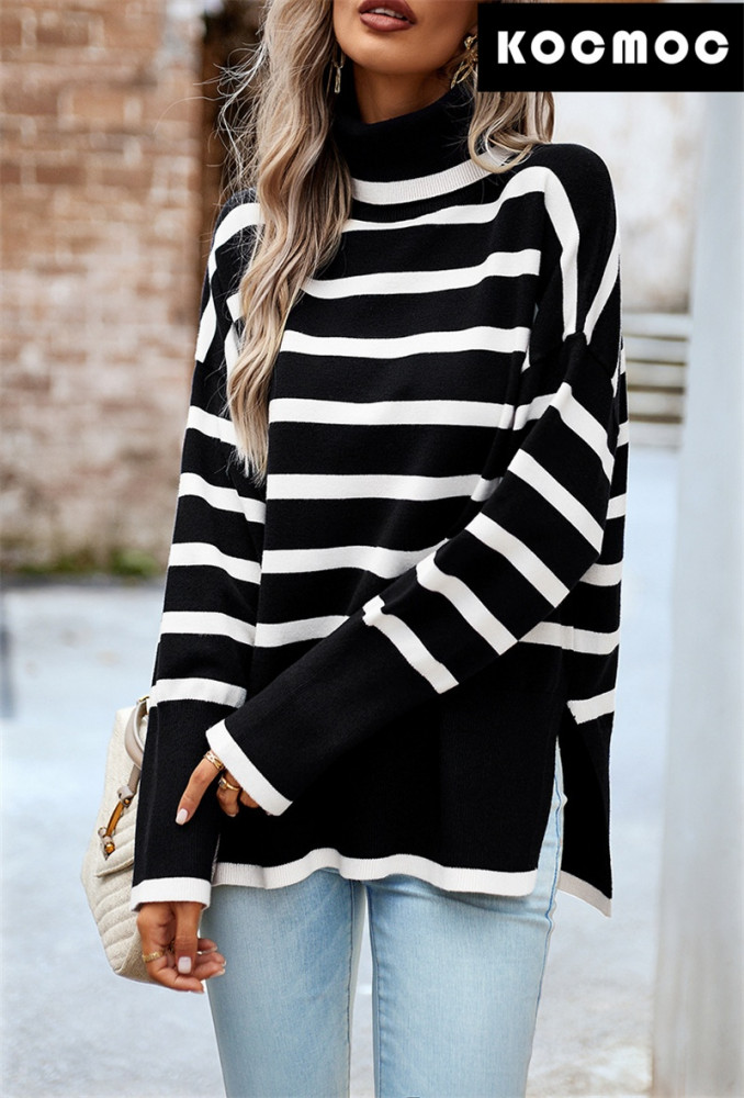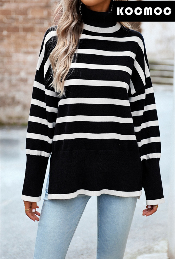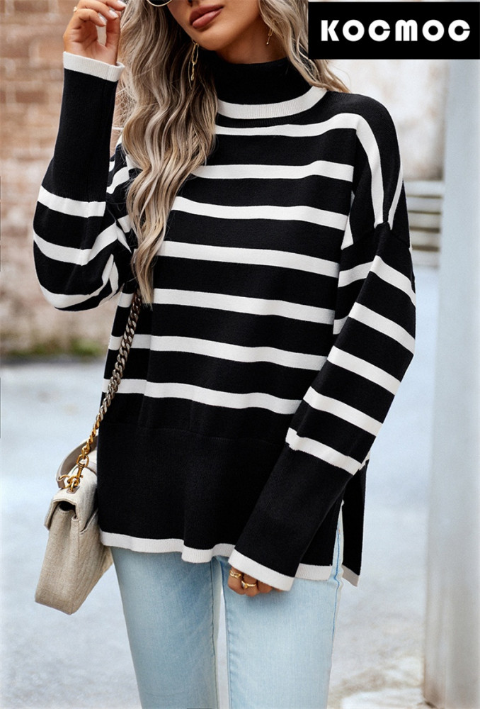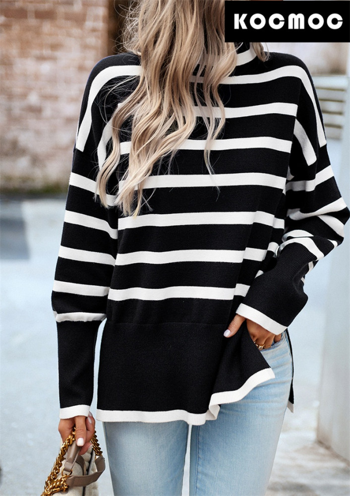 Свитер с полосками и высоким воротником станет идеальным выбором для осенне-зимнего сезона благодаря своему продуманному дизайну и качественным материалам. Изготовленный из мягкого на ощупь полиэстера, он обеспечивает комфорт и уют даже в холодные дни. Классический полосатый рисунок добавляет стильный акцент, а свободный высокий воротник защищает от холода и придает образу изысканности.