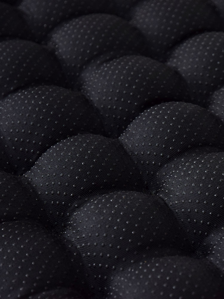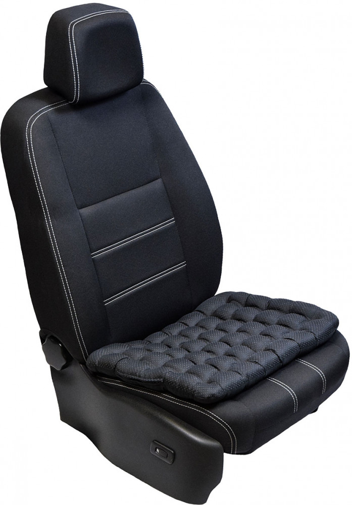 Подушка имеет прочный чехол из смесовой ткани, который защищает кресло от повреждений и загрязнений. Благодаря точечному силиконовому нанесению подушка надёжно удерживается на поверхности (в том числе и кожаной) и не нуждается в дополнительной фиксации.