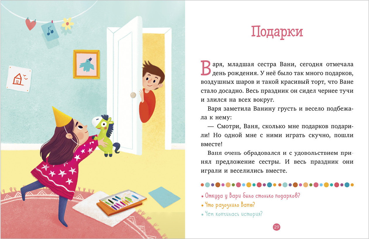 Вместе веселее. 31 историяВ данный момент этот товар отсутствует в продаже. Возможно, у нас найдется аналогичный или похожий товар здесь. Серия: Первое чтение «Вместе веселее. 31 история» — это сборник добрых семейных сказок. Благодаря героям книги ваш малыш научится справляться с новыми эмоциями и заботиться о близких. Рита боялась темноты и не признавалась маме в своих страхах, но когда призналась, мама сразу же помогла, и Рита поняла, что с близкими можно и нужно делиться! Варя волновалась, что с появлением младшего братика родители перестанут любить ее, но оказалось, что теперь ее будут любить не только мама с папой, но еще и брат! Даша с Юлей никак не могли поделить плюшевого мишку, Денис завидовал своему брату, Гриша не желал делиться конфетами... |
