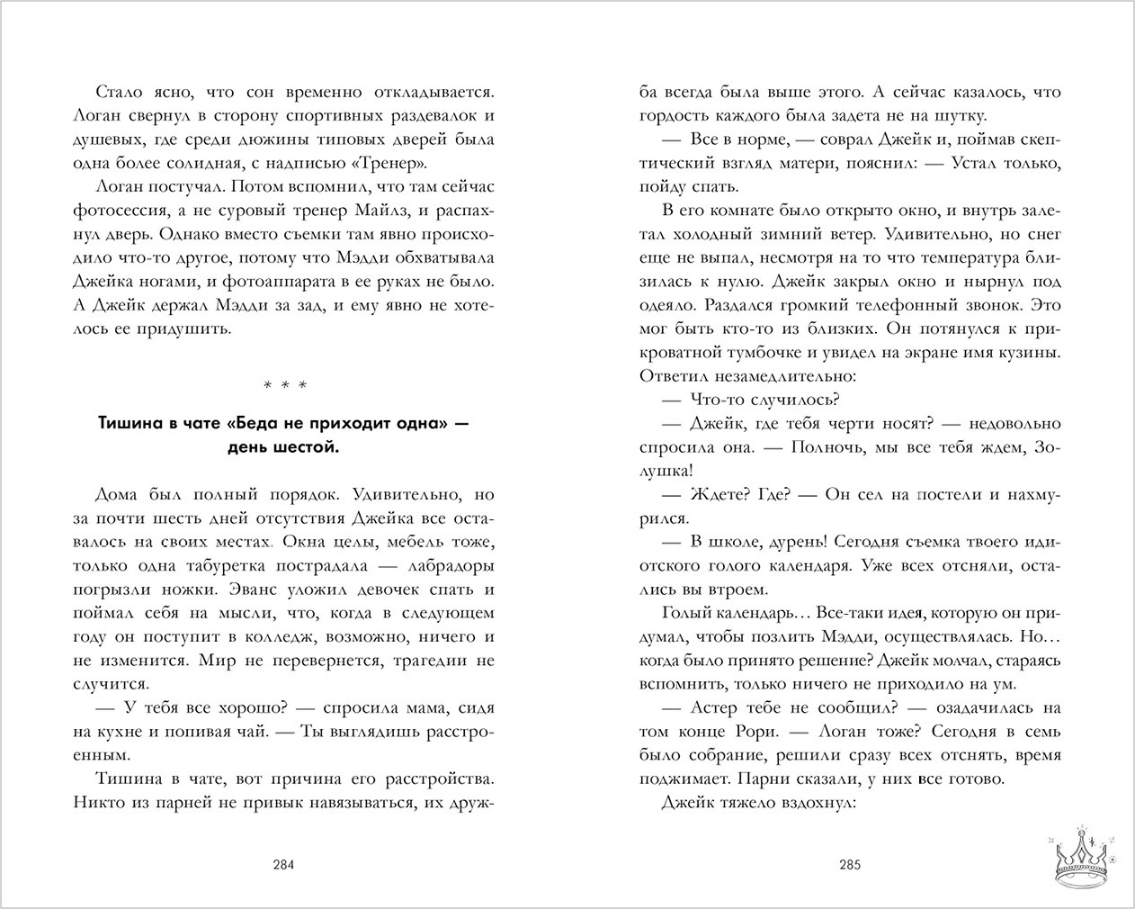 просто чудесная книга, эти парни что то невероятное, я не смогла выделить кого то одного, они все просто завоевали мое сердечко) очень интересный сюжет, много шуток, ну и конечно же немного драмы, куда же без неё 😏 а общем однозначно рекомендую эту историю ❤️