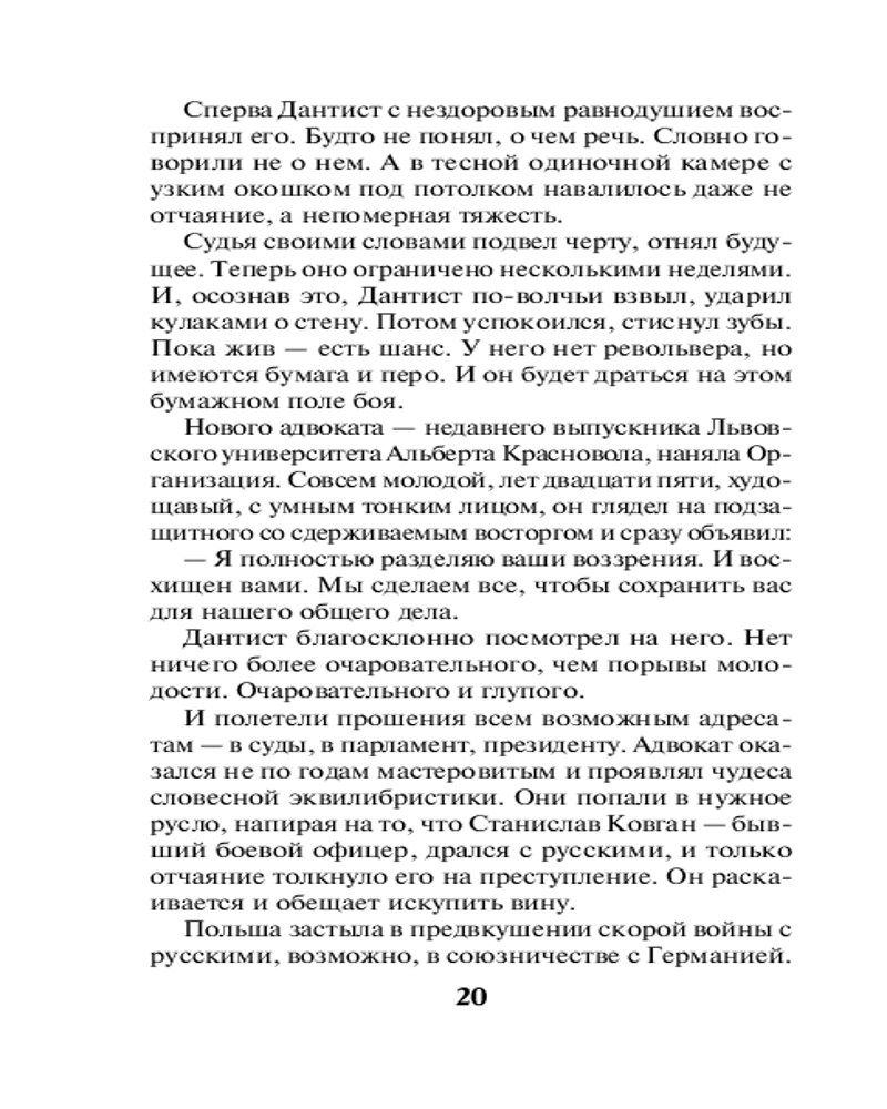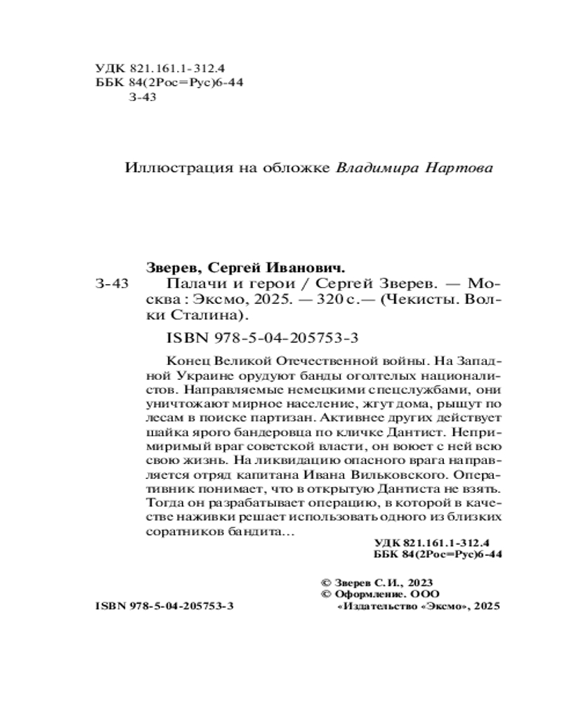 💳 Оплатить за товар можно при получении 🇰🇿 Есть бесплатная доставка по Казахстану от 1 дня 🎁 Копите бонусы с каждой покупки Серия: Чекисты. Волки Сталина (обложка) Конец Великой Отечественной войны. На Западной Украине орудуют банды оголтелых националистов. Направляемые немецкими спецслужбами, они уничтожают мирное население, жгут дома, рыщут по лесам в поисках партизан. Активнее других действует шайка ярого бандеровца по кличке Дантист. Непримиримый враг советской власти, он воюет с ней всю свою жизнь. На ликвидацию опасного врага направляется отряд капитана Ивана Вильковского. Оперативник понимает, что в открытую Дантиста не взять. Тогда он разрабатывает операцию, в которой в качестве наживки решает использовать одного из близких соратников бандита... |