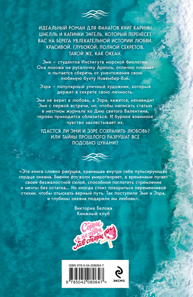💳 Оплатить за товар можно при получении 🇰🇿 Есть бесплатная доставка по Казахстану от 1 дня 🎁 Копите бонусы с каждой покупки Серия: Стихии любви Эми — студентка Института морской биологии. Она похожа на русалочку Ариэль, отлично плавает и пытается сберечь от уничтожения свою любимую бухту Новембер-Бэй. Эзра — популярный уличный художник, который держит в секрете свою личность. Эми не верит в любовь, а Эзра, кажется, ненавидит ее с первой встречи, но, чтобы написать статью в местном журнале ко Дню святого Валентина, героям приходится сблизиться. И бурное взаимное чувство захлестывает их. Удастся ли Эми и Эзре сохранить любовь? Или тайны прошлого разрушат все подобно цунами? |