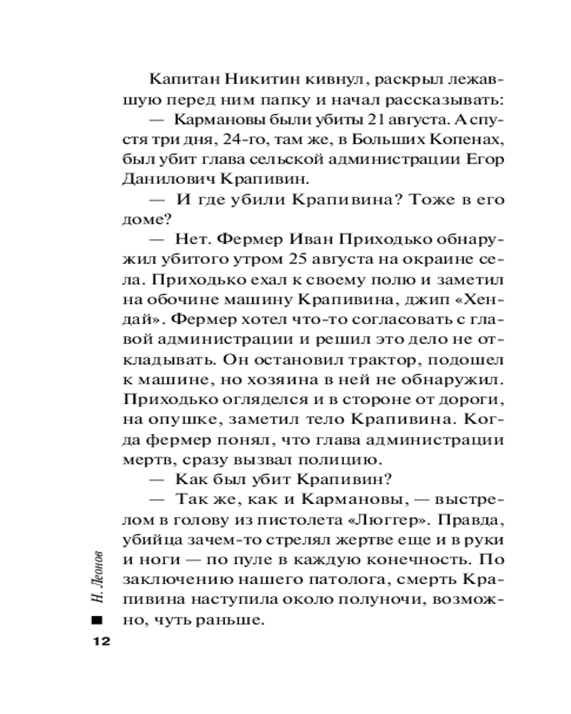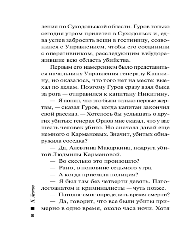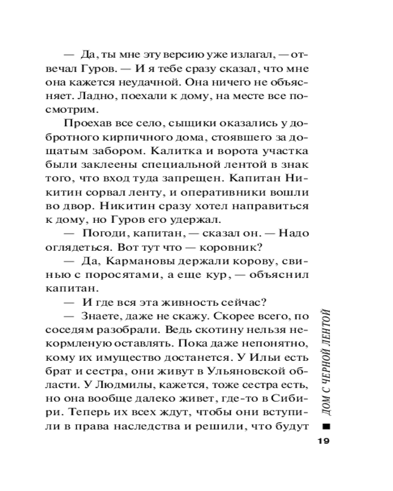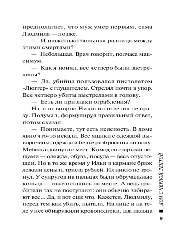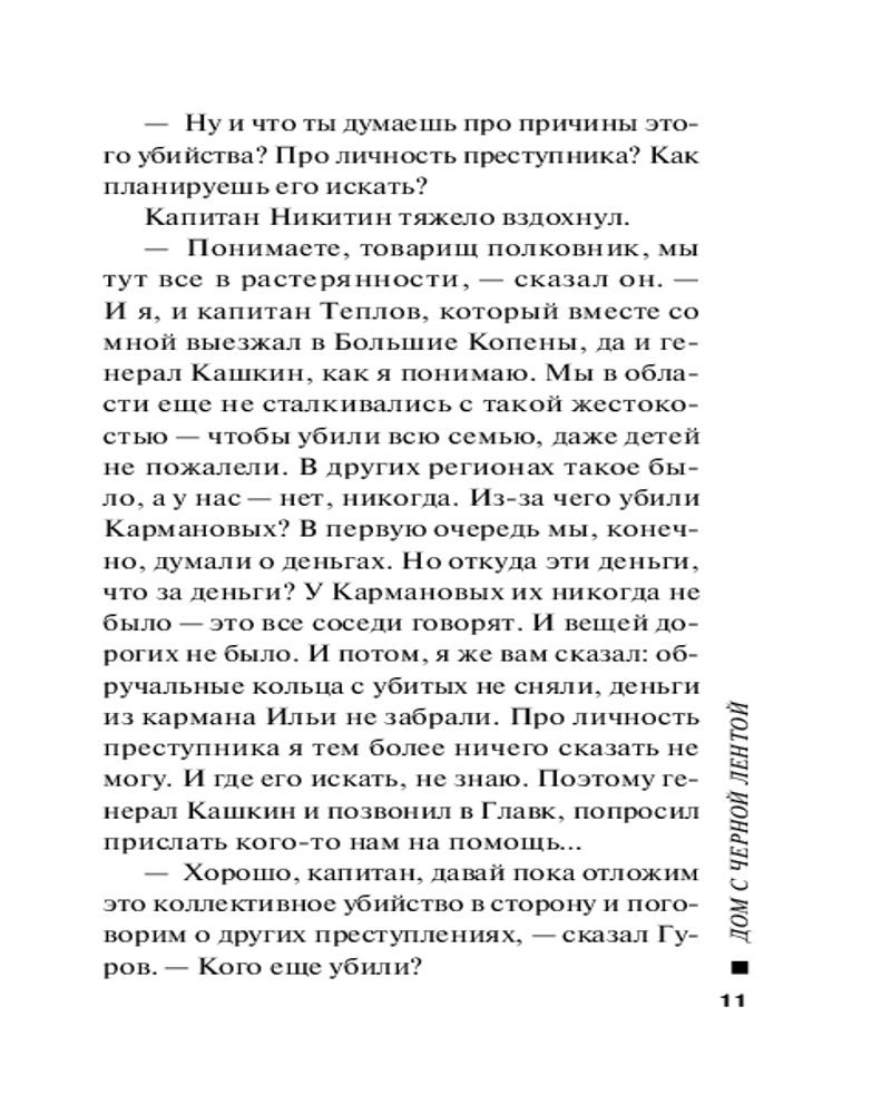 Дом с черной лентойАлексей Викторович Макеев, Николай Иванович Леонов В данный момент этот товар отсутствует в продаже. Возможно, у нас найдется аналогичный или похожий товар здесь. Серия: Русский бестселлер (обложка) Серия убийств потрясла маленький городок Суходольск. Сначала за одну ночь погибла целая семья фермеров — мать, отец и двое несовершеннолетних детей. Спустя три дня был убит глава сельской администрации, а следом за ним — бывший руководитель областной полиции. Первая версия полковника МВД Льва Гурова — разборки местных наркодельцов — оказалась несостоятельной. Все жертвы были убиты из одного пистолета. Но что еще, кроме орудия убийства, могло объединять таких разных по своему статусу погибших? Вскоре Гуров понимает, что он, кажется, нашел ответ на этот коварный вопрос... |