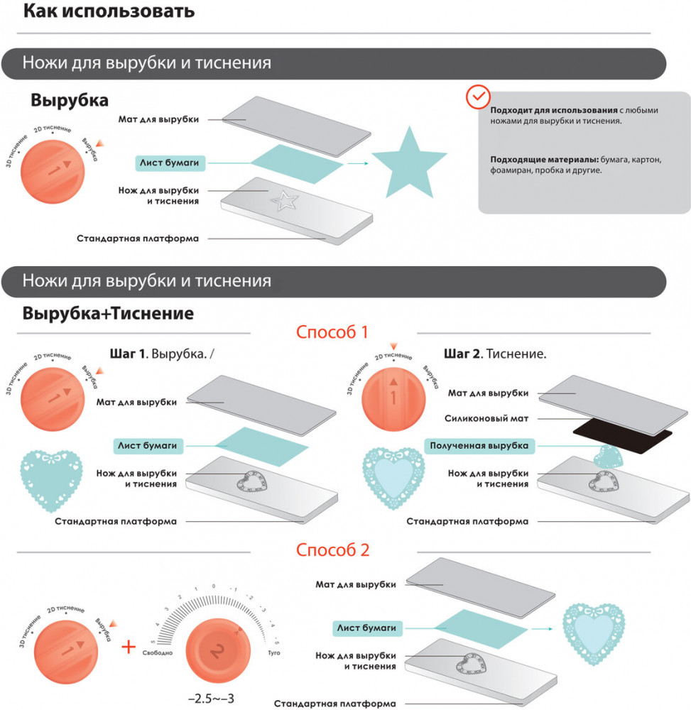 💳 Оплатить за товар можно при получении 🇰🇿 Есть бесплатная доставка по Казахстану от 1 дня 🎁 Копите бонусы с каждой покупки Ножи для вырубки и тиснения — это фигурные стальные ножи, предназначенные для использования с машинкой для вырубки и тиснения ОС-5. С их помощью можно создавать вырубки из различных материалов, а также эмбоссировать полученные изделия. В набор общим размером 100 × 100 мм входит 9 стальных ножей на новогоднюю тематику. Ножи многофункциональны: каждый из них позволяет создать вырубку и эффект тиснения. Материалы, подходящие для работы — бумага, картон, алюминиевая фольга для рукоделия, фоамиран и другие. |