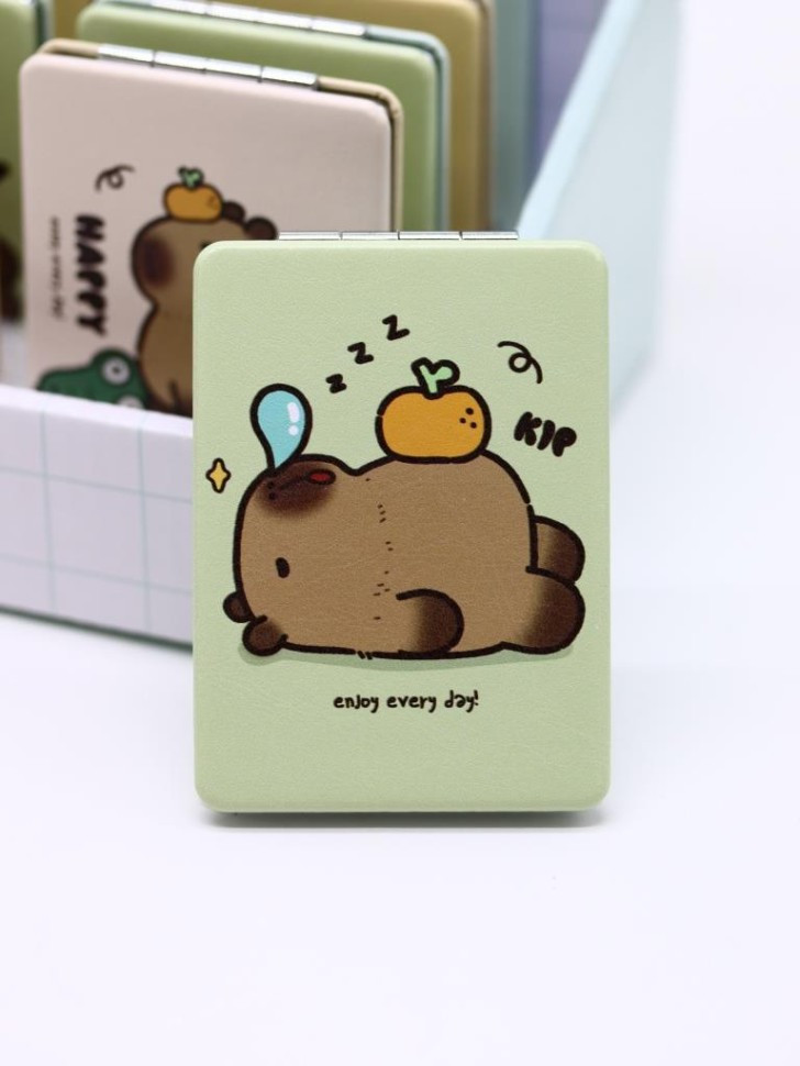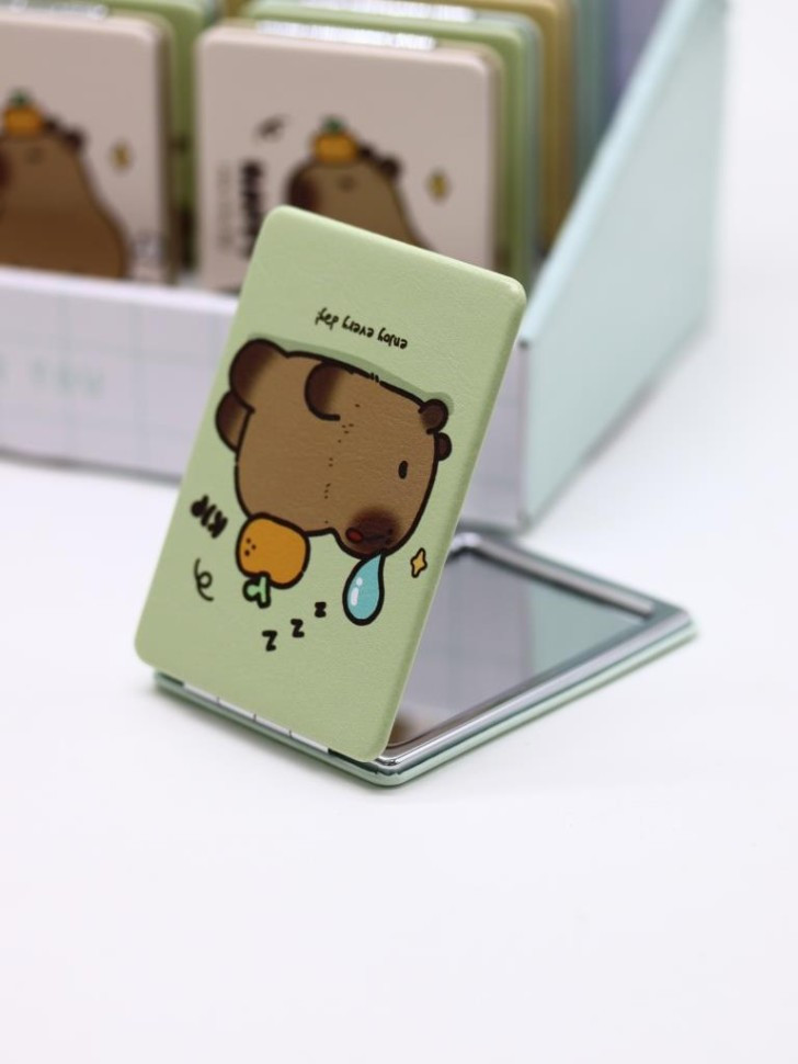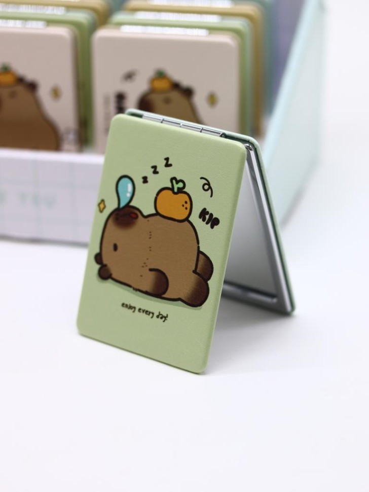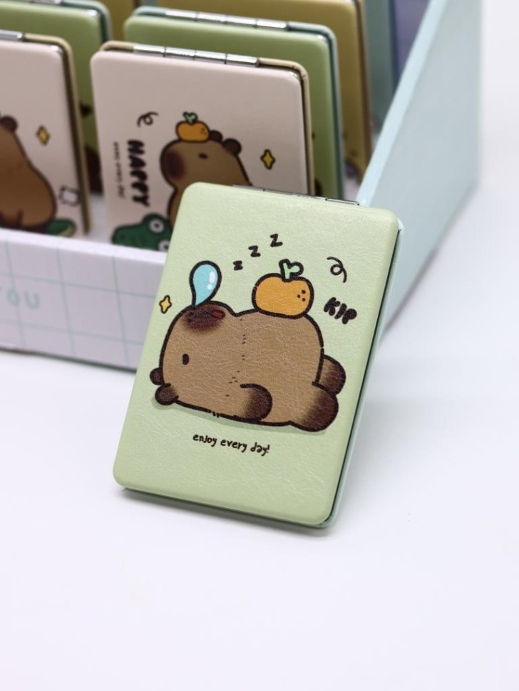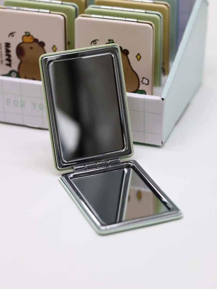 Toki Зеркало компактное раскладное «Capybara»В данный момент этот товар отсутствует в продаже. Возможно, у нас найдется аналогичный или похожий товар здесь. Серия: I like gift Стильное, карманное складное зеркальце, изготовленное в ярком и интересном дизайне, станет прекрасным украшением женской сумочки. Чехол зеркальца выполнен из плотного картона, с пластиковой окантовкой, обшит эко-кожей. Внутри установлено как обычное, так и зеркало с двойным увеличением. Размер: 8,5 х 6,2 х 0,9 см. |