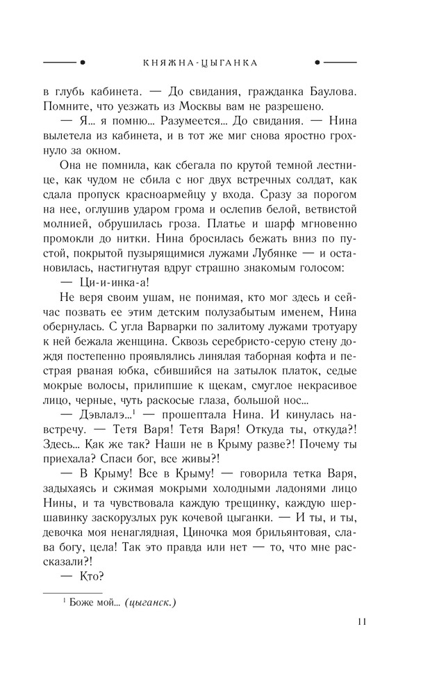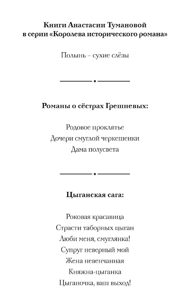 Княжна-цыганкаВ данный момент этот товар отсутствует в продаже. Возможно, у нас найдется аналогичный или похожий товар здесь. Серия: Королева исторического романа - А. Туманова Тяжела жизнь в цыганском таборе. Но именно табор стал домом для княжны Мери, бежавшей из родных мест после гибели родителей. Спасая свою жизнь, Мери не знала, что сердце она уже никогда не спасет. Любовь к цыгану Сене меняет ее до неузнаваемости, и даже разлука не способна убить надежду увидеть возлюбленного еще раз… Цыганка Дина ненавидит таборную жизнь, и, влюбившись в чужака, мечтает убежать с ним. Но после вестей о смерти любимого вынуждена выйти замуж за другого. Две подруги, две судьбы, такие одинаковые и такие разные. Любовь каждой мучительна, жизнь – обречена на одиночество, но каждая верит, что они еще будут счастливы. |