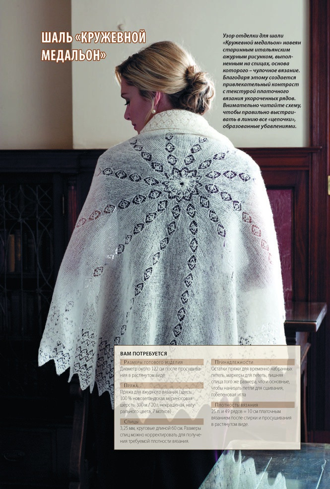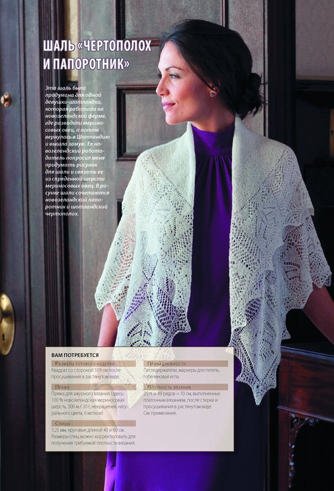 Очень хорошая книга! Хоть там и немного моделей, меньше 10, но они очень красивые и непростые! Вяжу по ней сейчас, схемы удобные, все расписано по пунктам, что делать и как! Единственно желательно знать технику провязывания некоторых петель! Но на спец, петли есть описания при моделях! Рекомендую вязальщицам шалей