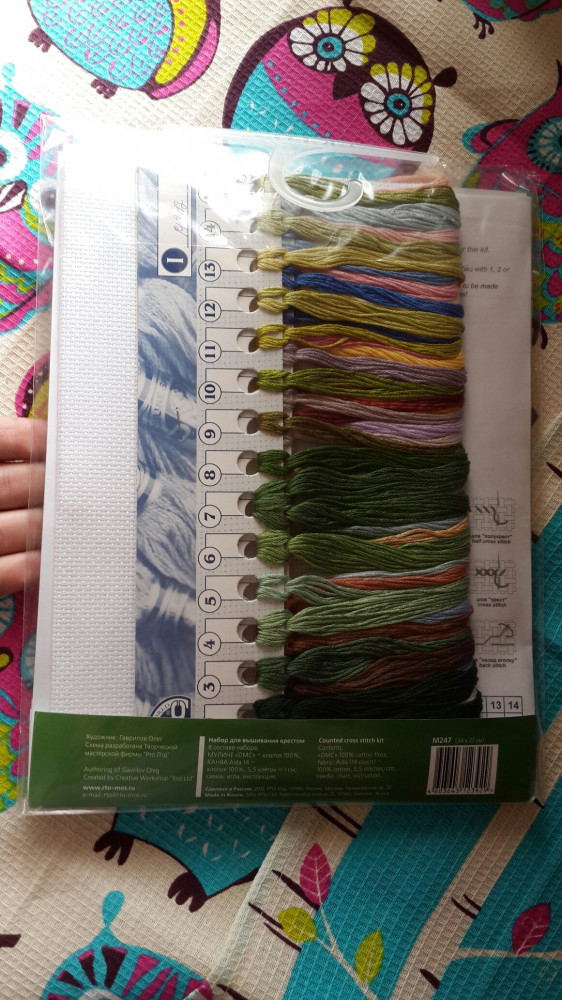 Очень нравятся наборы от РТО. В набор входит канва, игла, черно-белая символьная схема, мулине DMS 44 цвета и инструкция. Все понятно. Вышивается крестом, полукрестом и бек стич. Спасибо магазину FLIP.