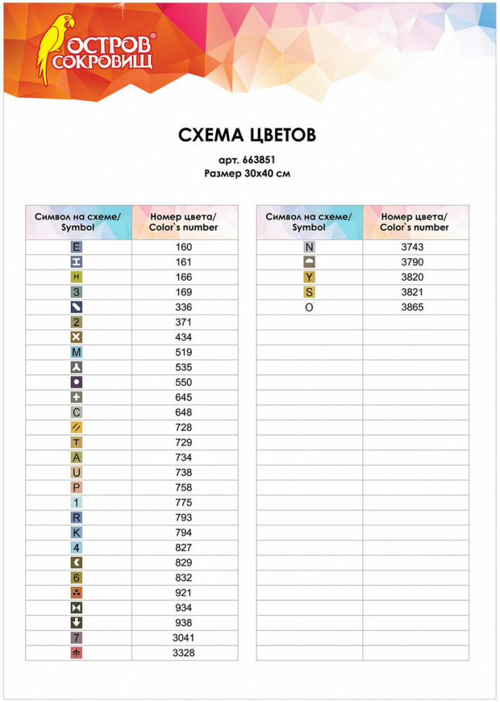 • схема соответствия цветов страз и символов на холсте.