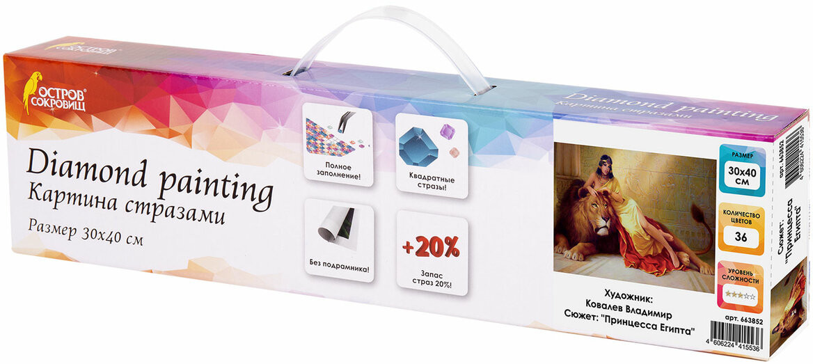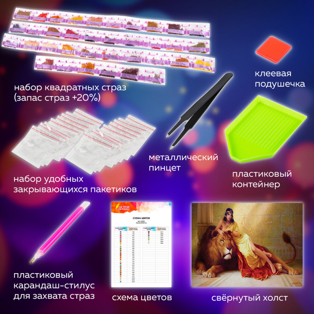 💳 Оплатить за товар можно при получении 🇰🇿 Есть бесплатная доставка по Казахстану от 1 дня 🎁 Копите бонусы с каждой покупки Картины стразами Остров сокровищ — это наборы для создания картин в технике алмазной мозаики с сюжетами известных российских художников. В наборе содержится все необходимое для создания шедевра своими руками. Картина стразами «Принцесса Египта» основывается на одноименном произведении российского художника Владимира Ковалева. |