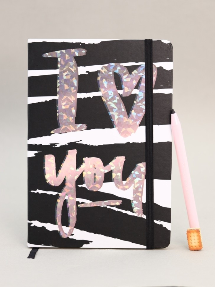 Toki Блокнот «I love you metallic»В данный момент этот товар отсутствует в продаже. Возможно, у нас найдется аналогичный или похожий товар здесь. Серия: I like gift Стильный блокнот на резинке, формата А5, в твёрдом переплёте, с нанесением яркого дизайнерского принта. Состоит из 96 листов бежевой бумаги в линейку плотностью 80 г/м2. |