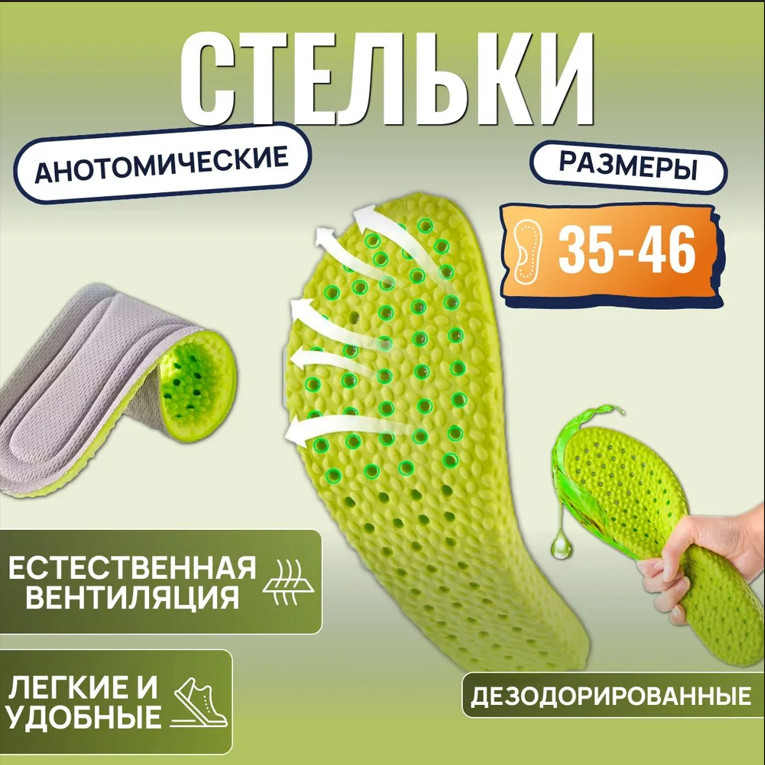 Комплект универсальных, анатомических, дышащих и ароматизированных стелек для обуви