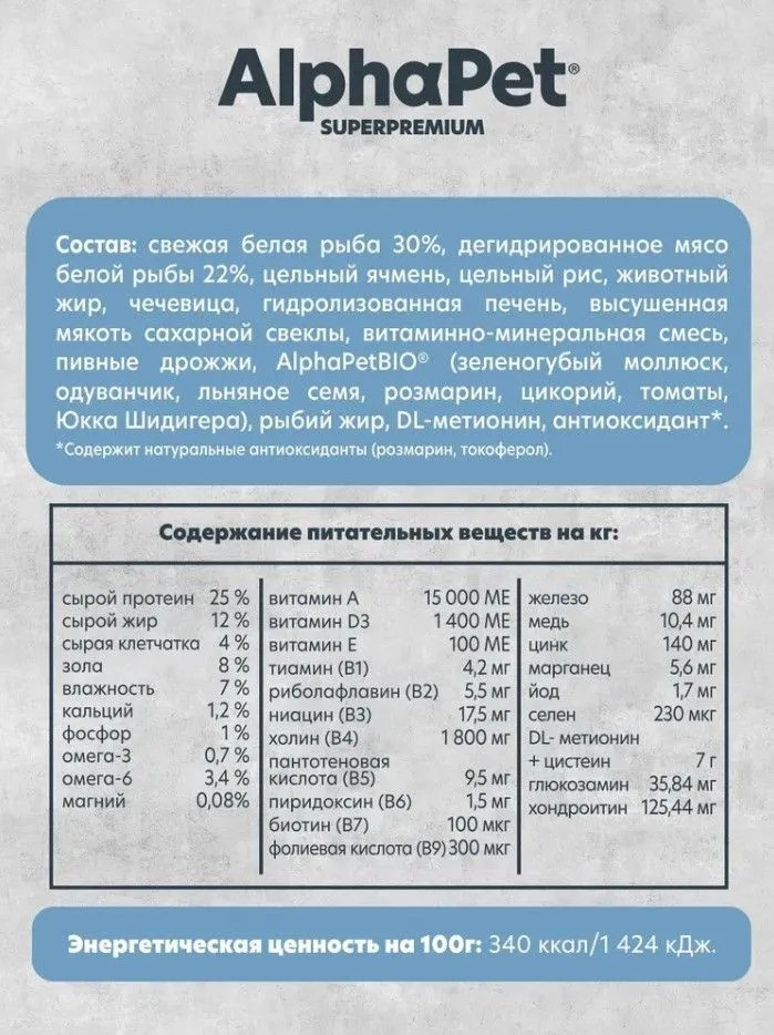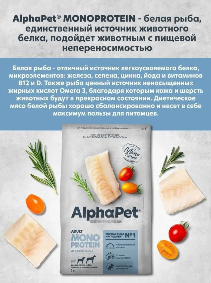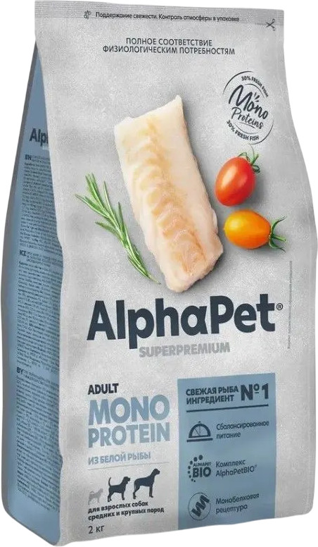 AlphaPet Корм для взрослых собак средних и крупных пород из белой рыбы