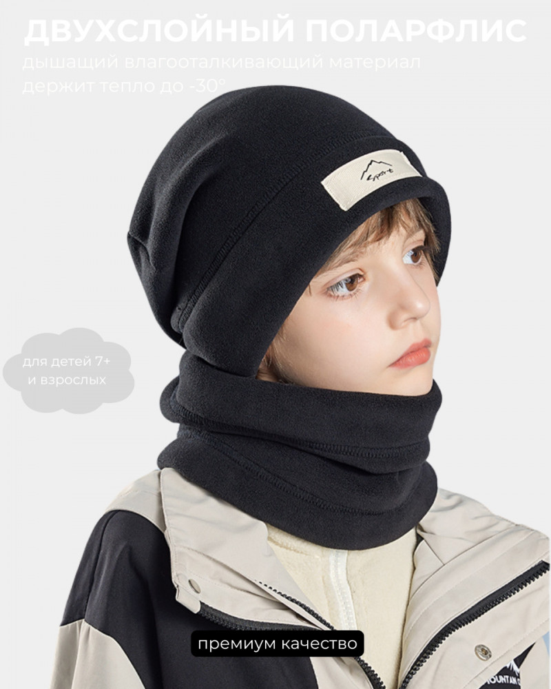 Снуд в комплекте — это стильный и практичный аксессуар, который защищает шею и нижнюю часть лица от ветра и мороза. Поларфлис Softshell обеспечивает приятное прилегание к коже, исключая неприятное трение и дискомфорт. Снуд можно носить в различных вариациях: как шарф, закрывающий только шею, или как маску, прикрывающую лицо. Это делает его особенно актуальным для прогулок в ветреную погоду или занятий спортом на открытом воздухе.